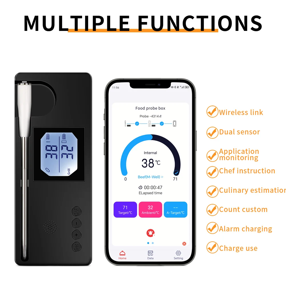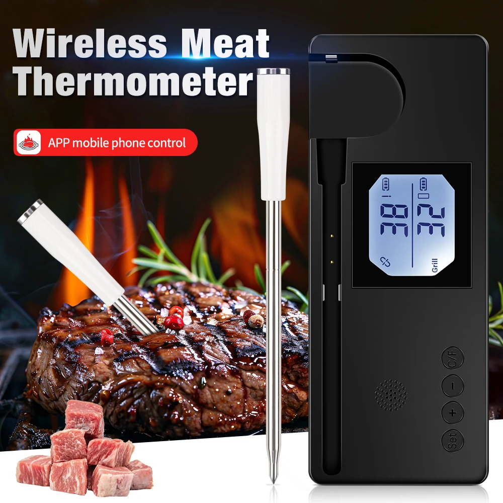 Termómetro inalámbrico inteligente para barbacoa, Bluetooth, probador de temperatura de carne y alimentos, termómetro de Control por aplicación de monilo para horno, parrilla, barbacoa