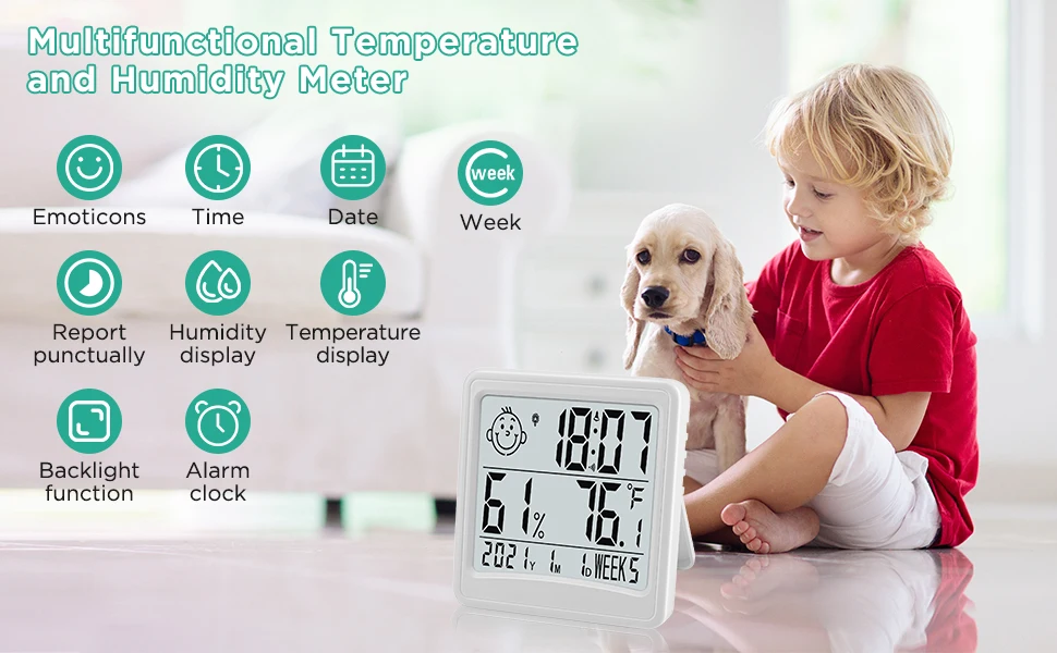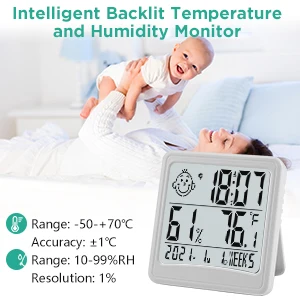 【Alta precisión y actualización rápida】El medidor de humedad se actualiza cada 10s para proporcionarle las últimas lecturas. La precisión de la temperatura oscila alrededor de ± 1 ℃, mientras que la precisión de la humedad es de ± 5% RH. El termómetro digital higrómetro preciso indica que el aire acondicionado actual garantiza un control adecuado de la humedad, beneficio para la piel, alérgenos y otros problemas de salud