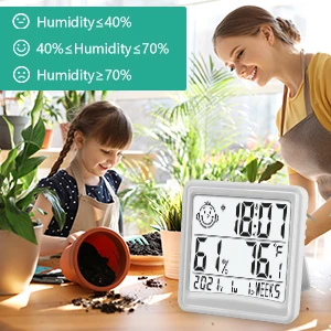 【Indicador de comodidad del aire】higrómetro con icono de nivel de humedad para indicar rápidamente las condiciones de aire seco/cómodo/húmedo, con sensores sensibles en el interior para garantizar que siempre esté al tanto de los cambios en su hogar con solo un vistazo rápido