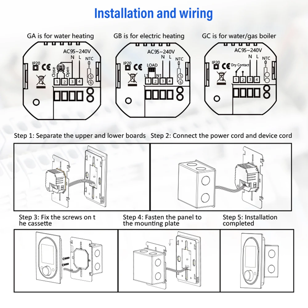 Termostato WiFi inteligente, perilla programable, controlador de temperatura, calefacción por suelo eléctrica, termostato de caldera de Gas para hogar y oficina