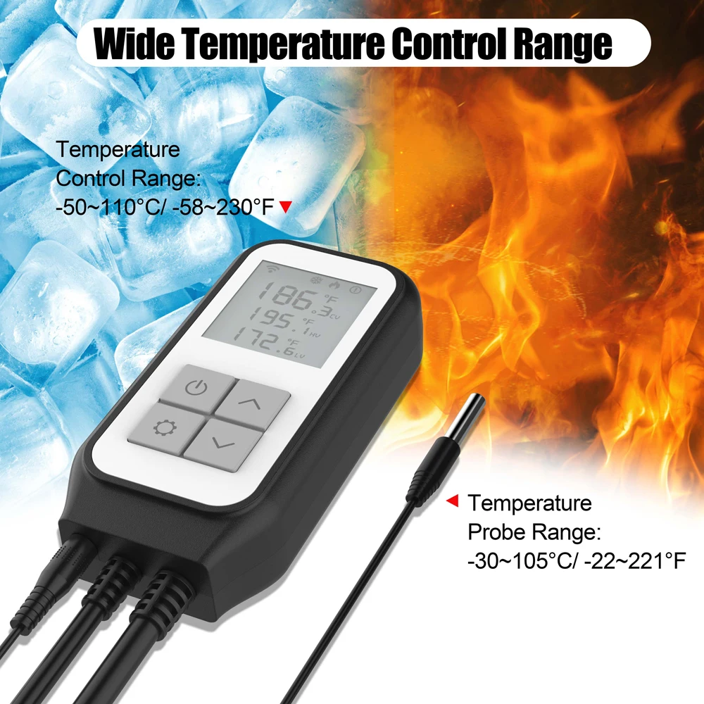 •Salida de relé dual: puede conectarse con equipos de refrigeración y calefacción al mismo tiempo.
