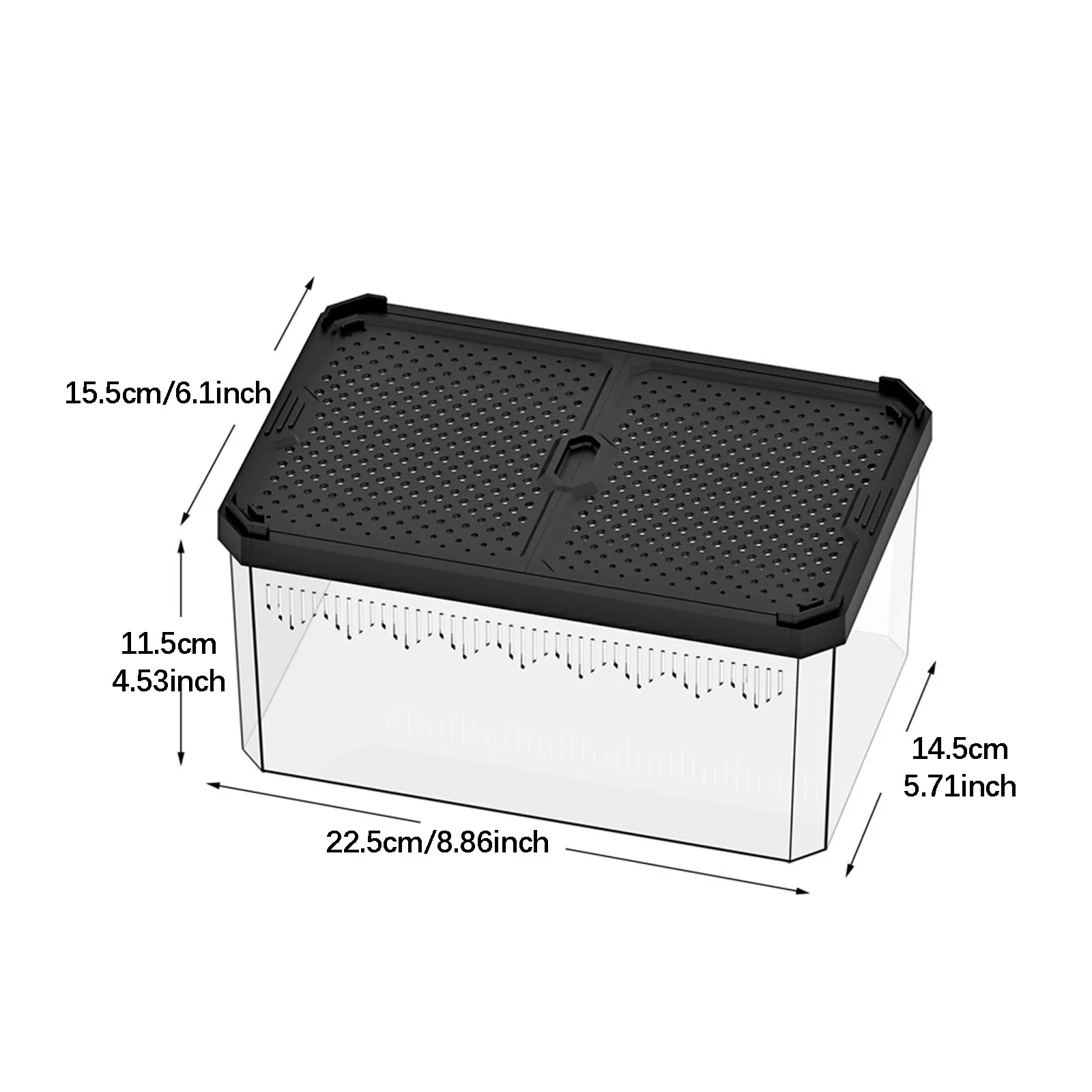【Fácil limpieza】La forma cuadrada sin rincones muertos hace que la limpieza sea rápida y sencilla para que pueda mantener un ambiente ordenado en su caja de transporte de terrarios o reptiles con el mínimo esfuerzo.
