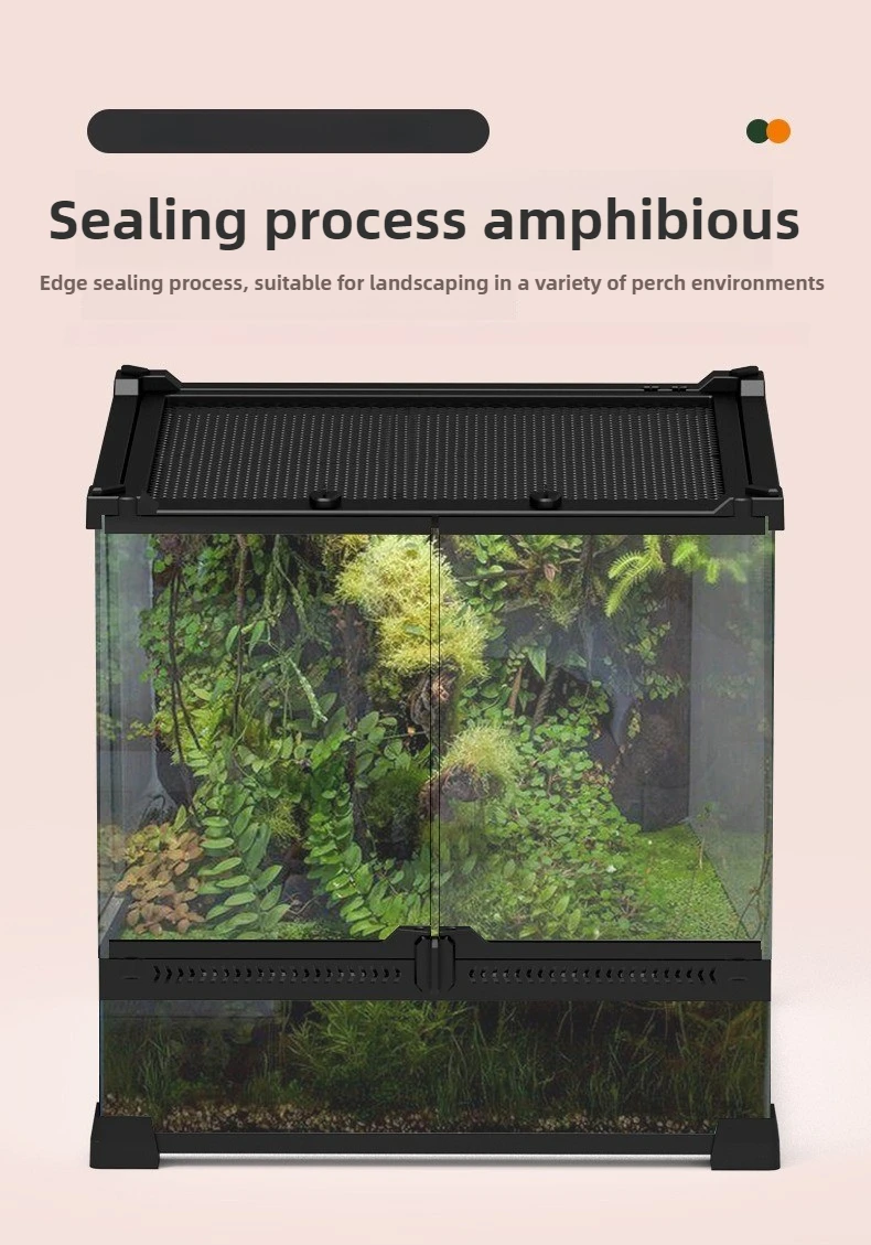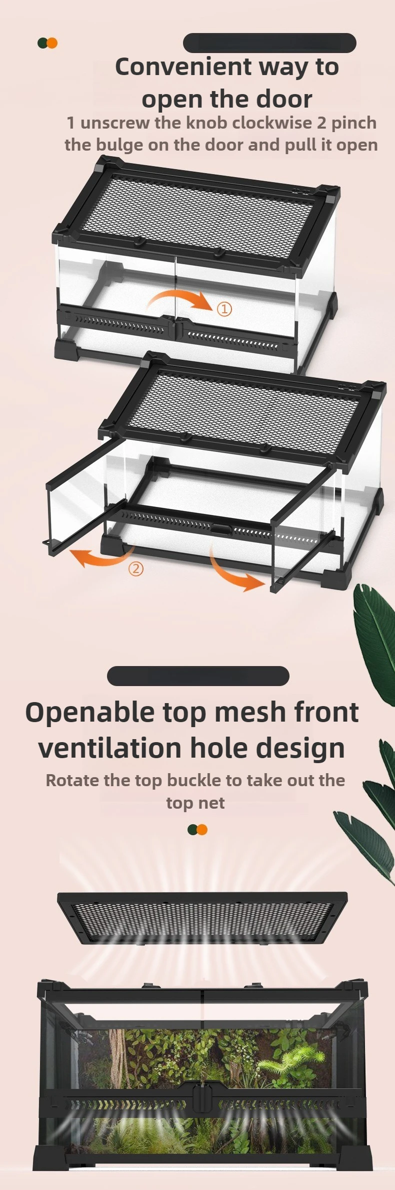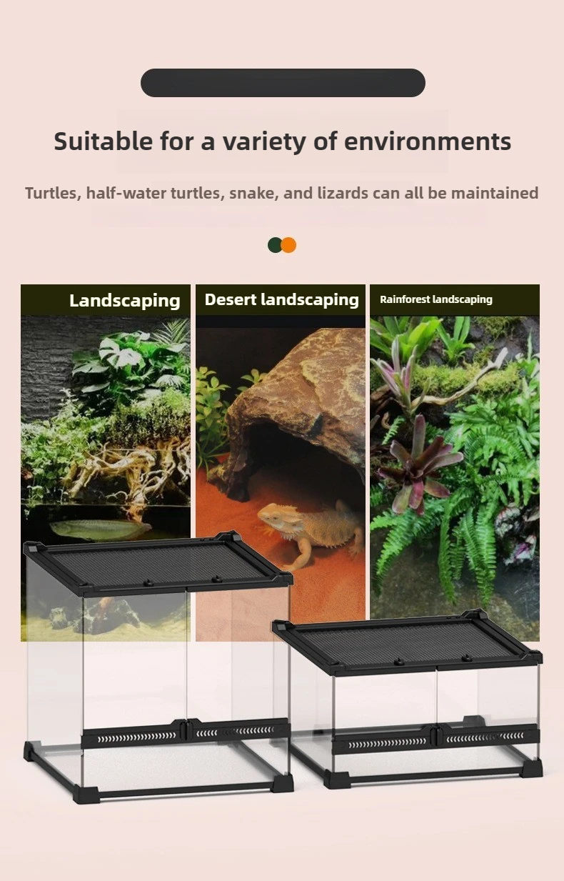 Terrario de lagarto de vidrio, suministros de lagarto, terrario grande para reptiles, jaula de cría de reptiles de vidrio templado de doble puerta transparente para el hogar