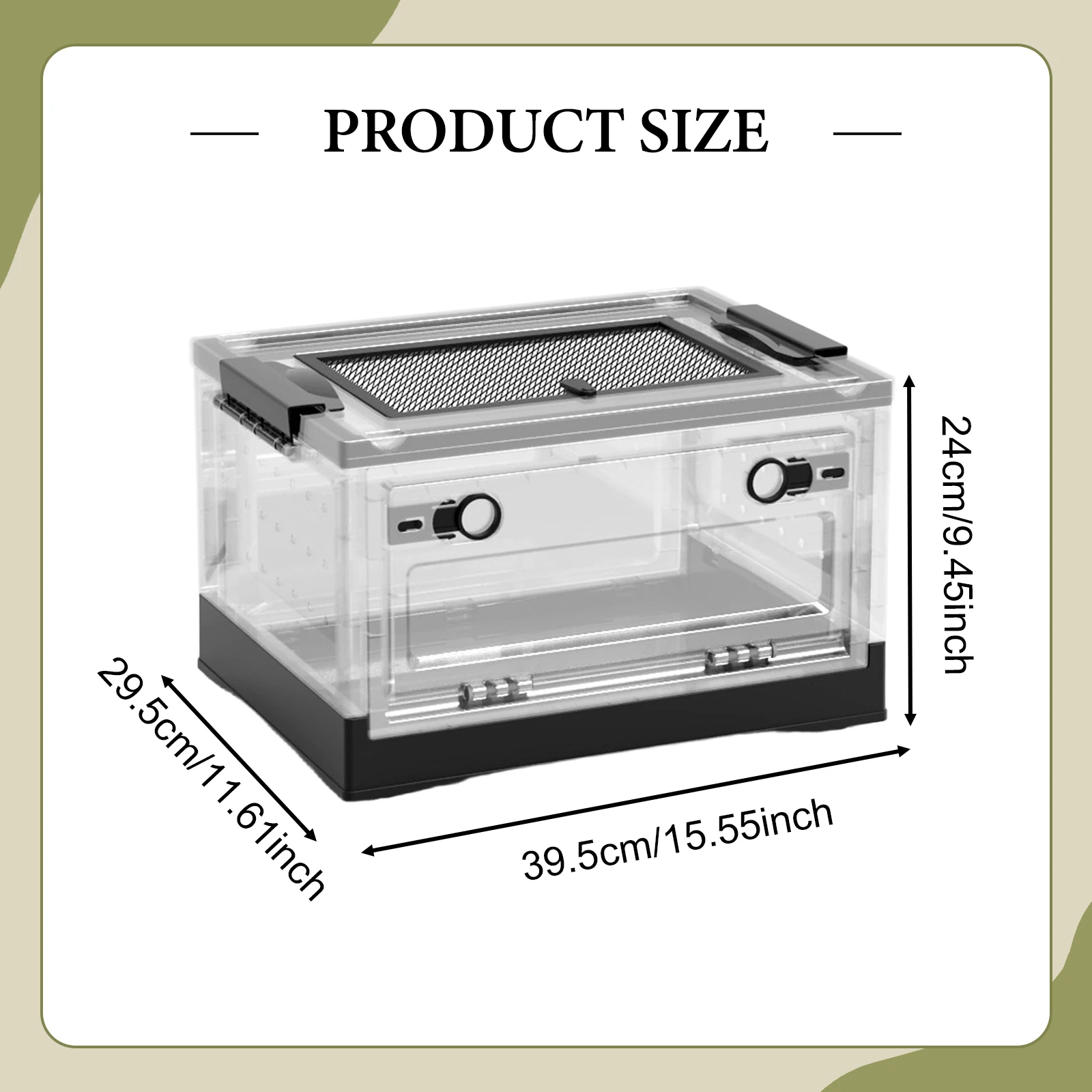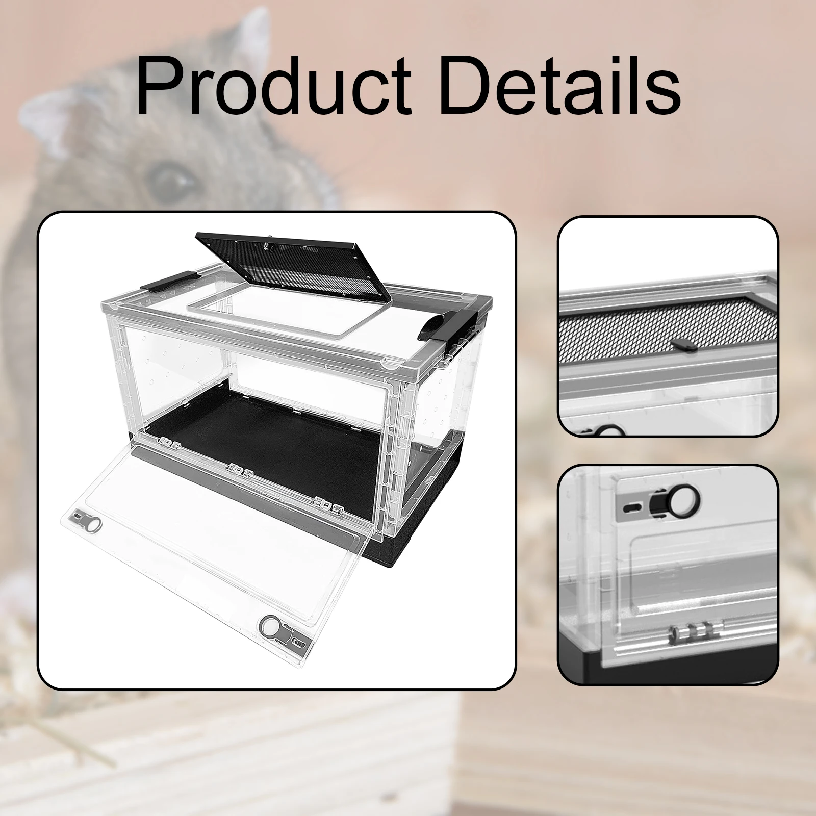 【Fácil mantenimiento】: el panel frontal de la caja de alimentación para reptiles está diseñado para abrirse y cerrarse sin esfuerzo, lo que facilita la limpieza y mantener un ambiente higiénico para su animal pequeño.