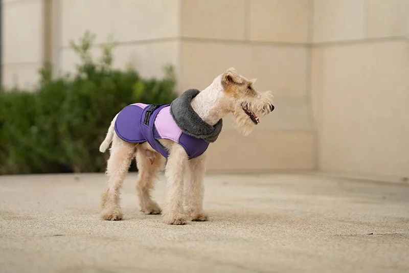 COLLAR FURRY CON ESTILO: Nuestros abrigos para clima frío para perros cuentan con un cuello alto grueso y plegable para mayor calidez y una apariencia elegante.Además, el collar peludo se puede elevar para proteger el cuello de su perro en climas ventosos.