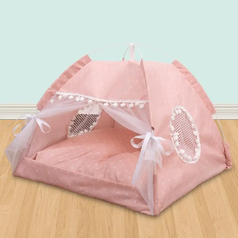 Tienda de campaña para interior de princesa para gato, cueva Floral bonita para perro, cama nido, tiendas de campaña portátiles para perro, Rosa