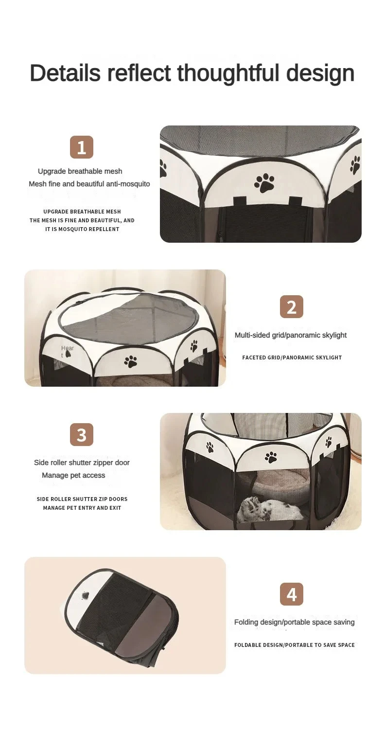 1. Presentamos nuestra tienda plegable para mascotas, la solución definitiva para brindar un espacio cómodo y transpirable para sus queridos amigos peludos.Diseñada pensando en la calidad y la comodidad, esta versátil casa para mascotas es perfecta para varios animales, lo que la convierte en imprescindible para todos los dueños de mascotas.