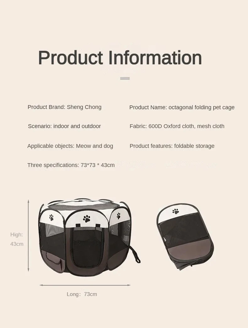 2. Fabricada con una tela Oxford resistente y duradera, nuestra tienda para mascotas garantiza un uso duradero y es resistente a los arañazos.La forma octogonal permite la máxima utilización del espacio, proporcionando un amplio espacio para que sus mascotas jueguen, descansen o duerman.