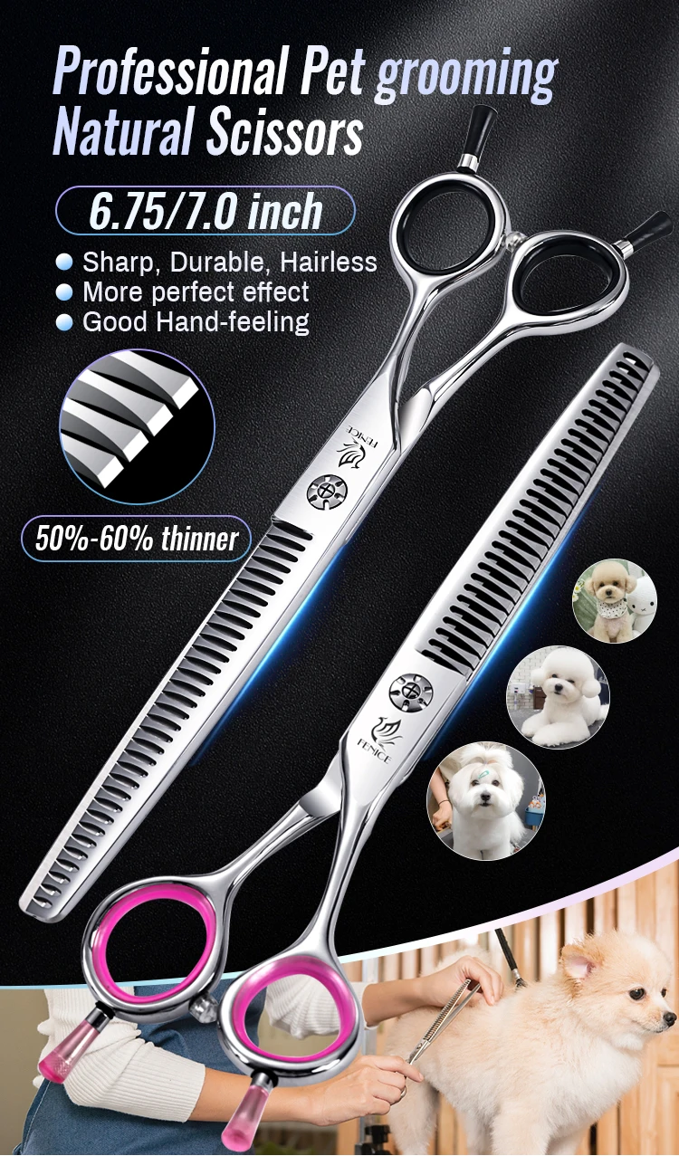 Las tijeras de adelgazamiento para perros Fenice 440C representan la herramienta definitiva para peluqueros profesionales y dueños responsables que buscan mantener el pelaje de sus mascotas con precisión y calidad superior. Este innovador sistema de corte de acero 440C está diseñado con material de alta calidad japonesa que garantiza durabilidad y precisión mientras la tasa de adelgazamiento del 50-60% proporciona un corte suave y natural. El diseño ergonómico de 6.75-7 pulgadas facilita el manejo prolongado, y los filos afilados aseguran un corte limpio sin tirar del pelo, convirtiéndose en la herramienta esencial que transforma el cuidado del pelaje en una experiencia profesional y segura, proporcionando la confianza necesaria para mantener a tu compañero con un aspecto impecable, permitiéndote disfrutar de una mascota bien cuidada y feliz con la tranquilidad de que estás utilizando herramientas profesionales de la más alta calidad.