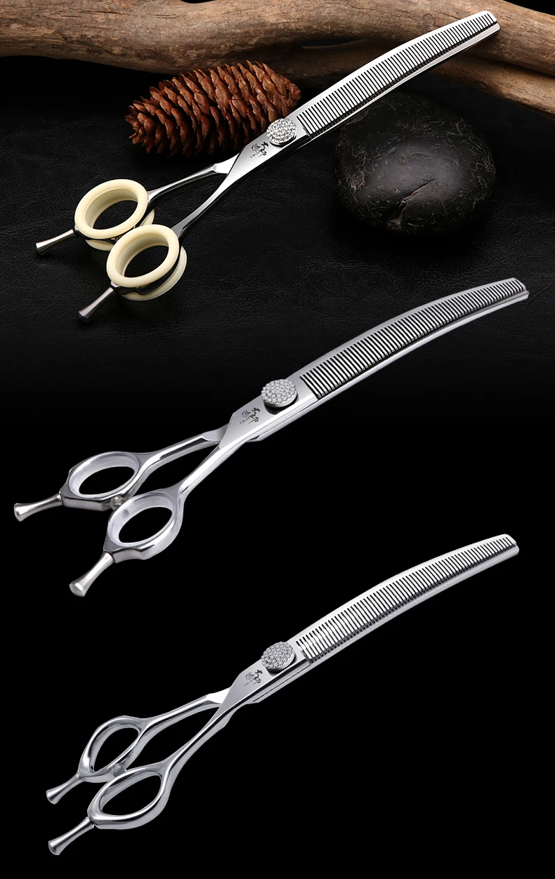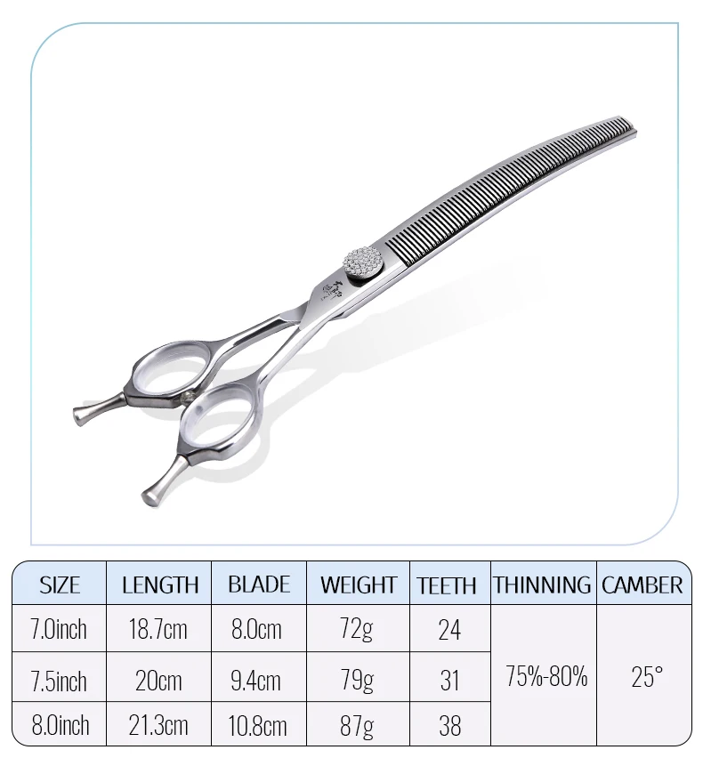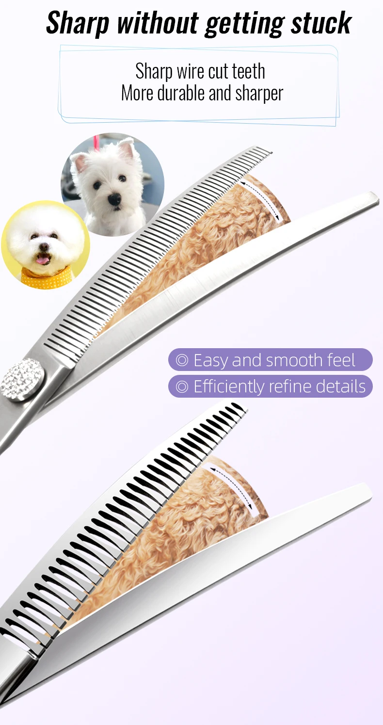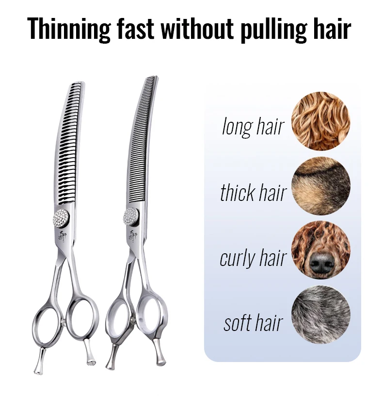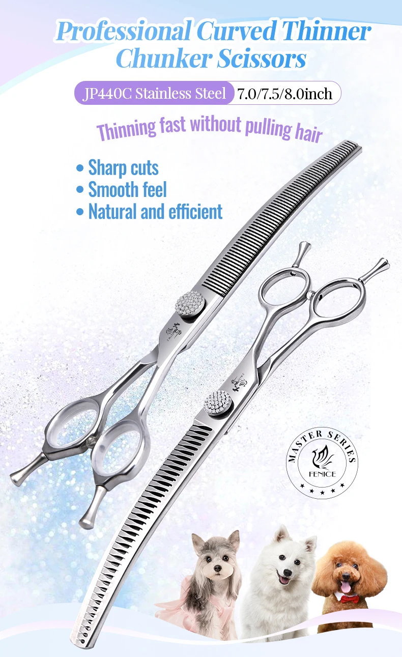 Tijeras de aseo Fenice, tornillo de diamante de 7/7,5/8 pulgadas, tijeras profesionales curvadas, tijeras más delgadas para herramientas de esteticista para mascotas
