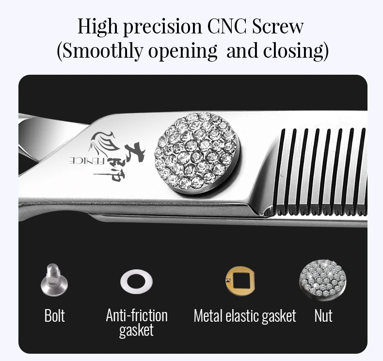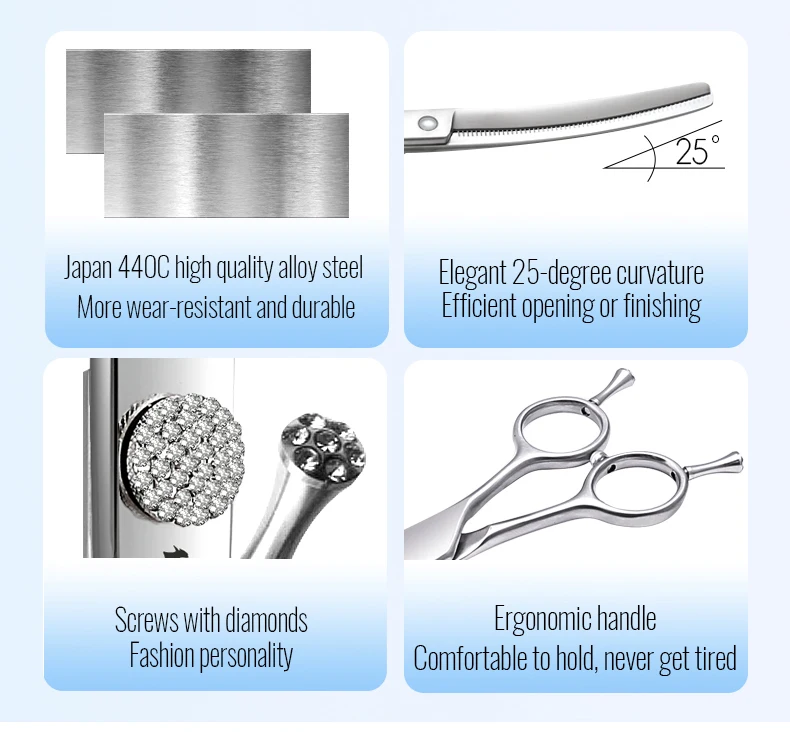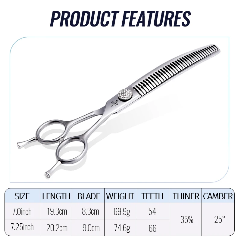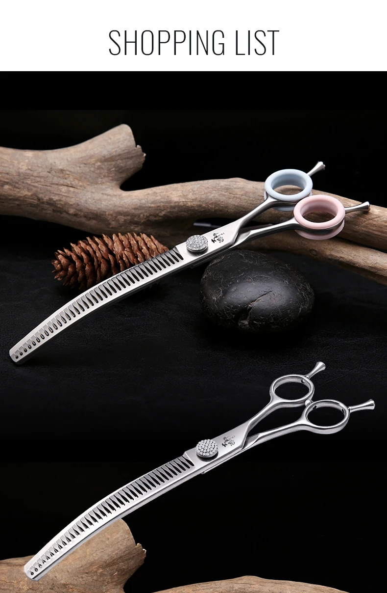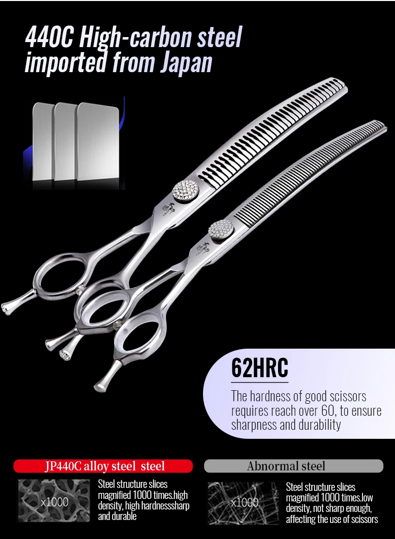 Tijeras de aseo Fenice, tornillo de diamante de 7/7,5/8 pulgadas, tijeras profesionales curvadas, tijeras más delgadas para herramientas de esteticista para mascotas