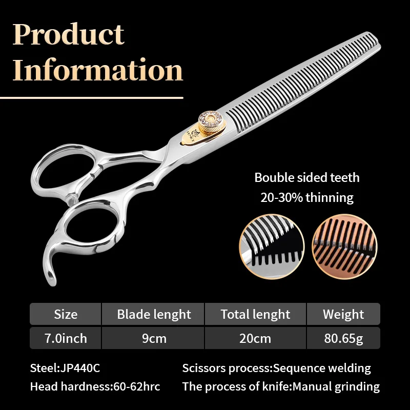Tijeras de belleza para perros Fenice, tijeras profesionales de 7 pulgadas con dientes dobles para el cuidado de mascotas, tijeras más delgadas, tasa de adelgazamiento de 20-30%