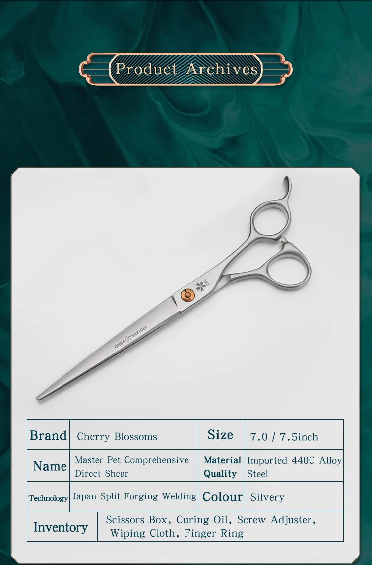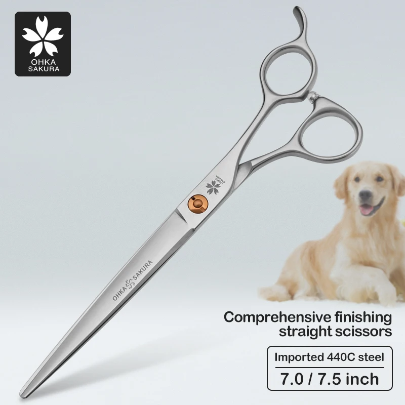 Tijeras de belleza profesionales, 7,0-7,5 pulgadas, tornillo dorado, cizalla directa, acero inoxidable 440C para afeitar, cuidado de mascotas, calidad japonesa