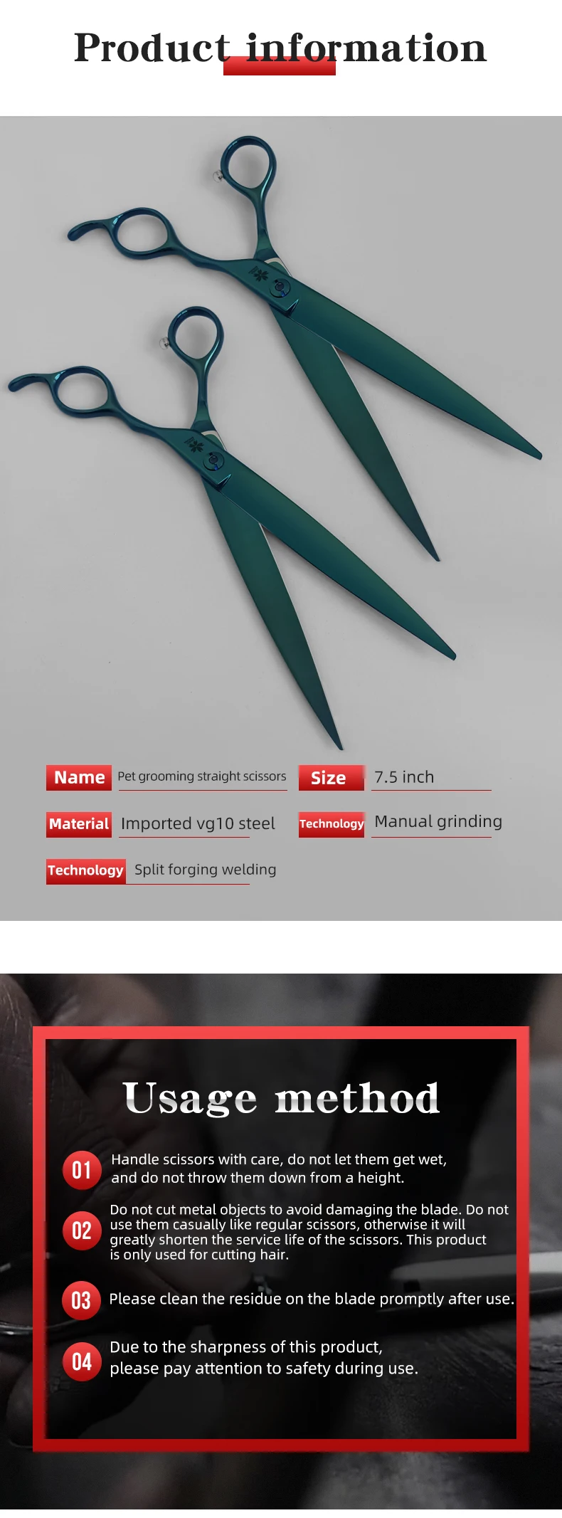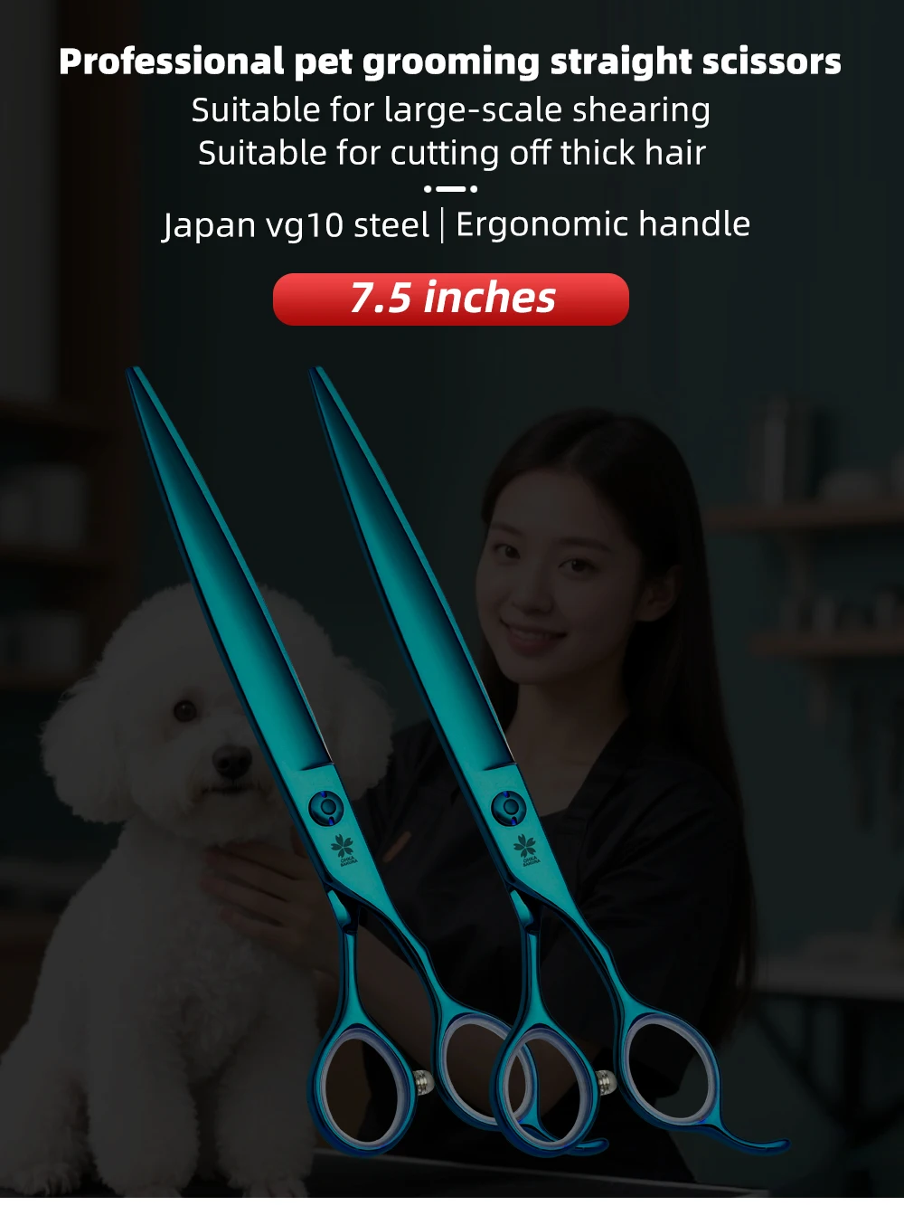 Tijeras de corte grandes para mascotas, corte de pelo grueso, aseo para mascotas, acero japonés VG10, 7,5 pulgadas, Teddy, esteticista profesional para mascotas