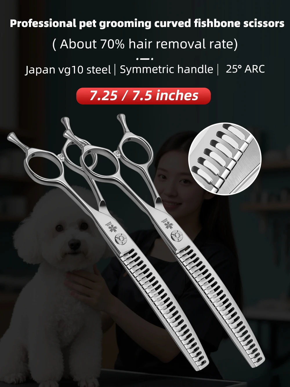 Tijeras de espina de pescado para el cuidado de perros, tijeras de belleza para perros para mascotas de 7,25/7,5 pulgadas, salón de cuidado de mascotas, acero japonés VG10
