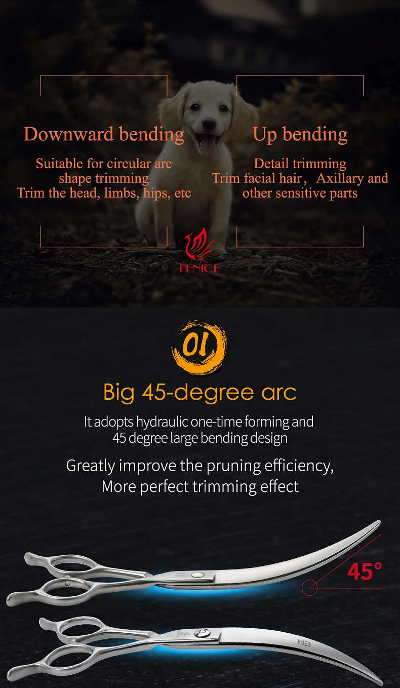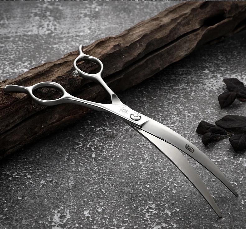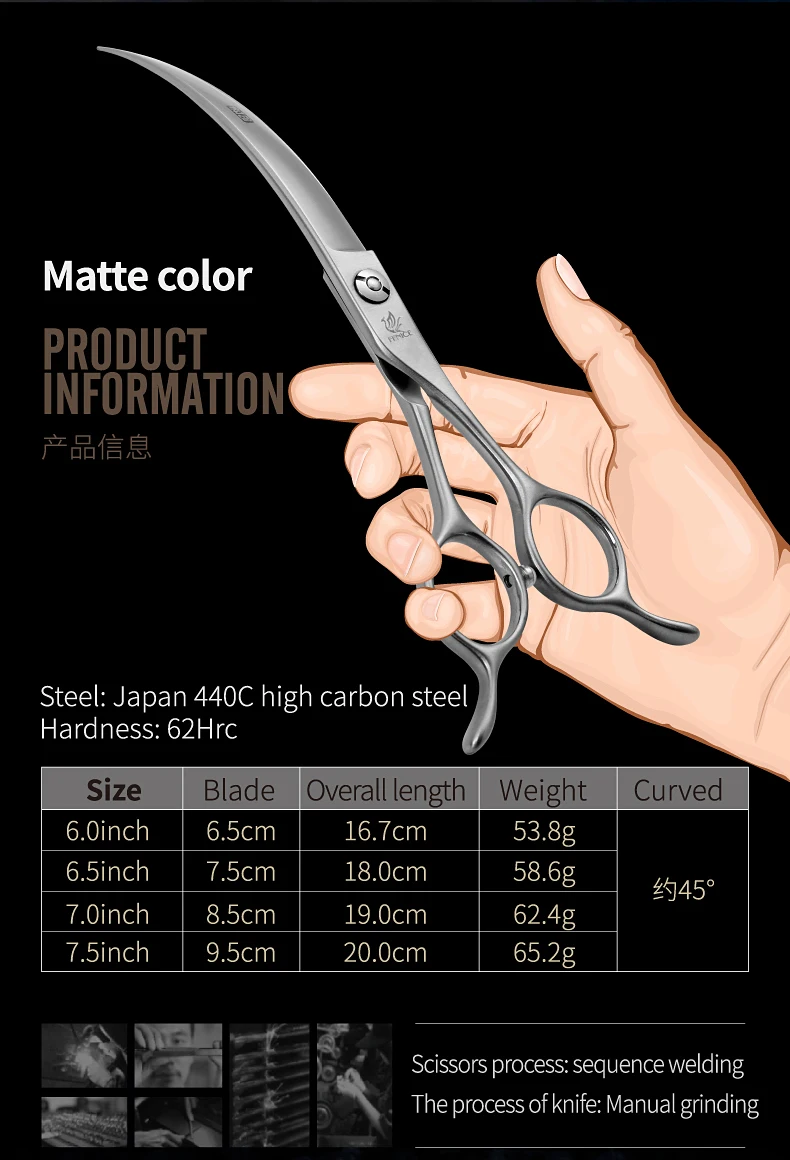 La curva de la tijera no está en toda la longitud de la hoja, cerca del mango y en la punta es recta.