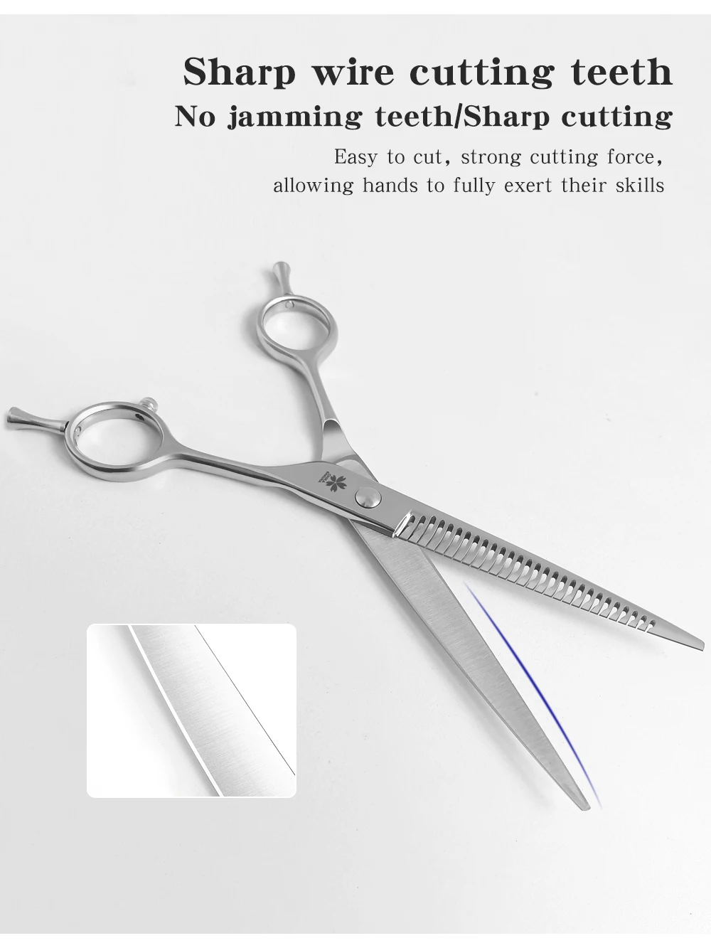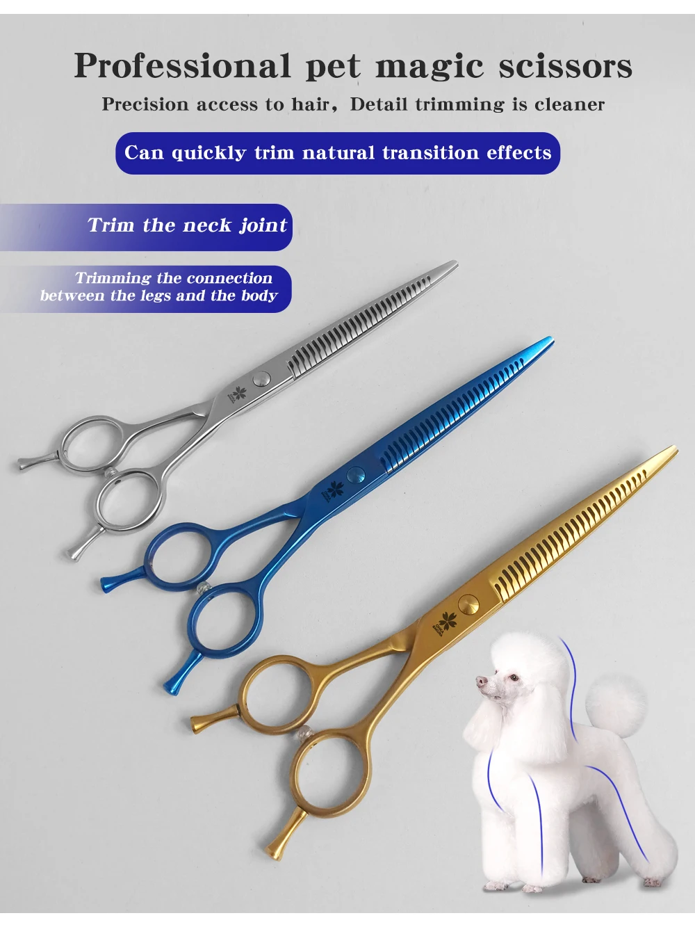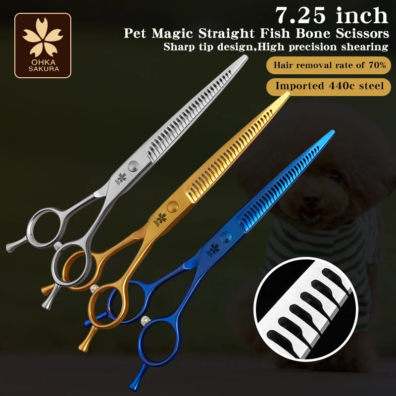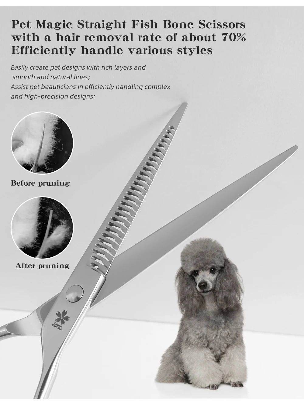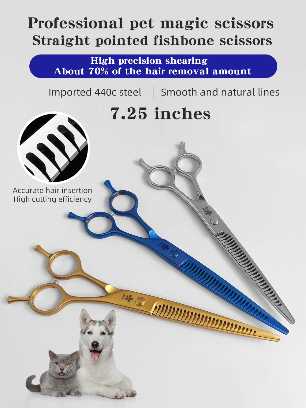 Tijeras mágicas para el cuidado de mascotas JP440C de 7,25 pulgadas, tasa de adelgazamiento de peluquería 70% para belleza de perros/gatos, tijeras para afinar huesos de pescado