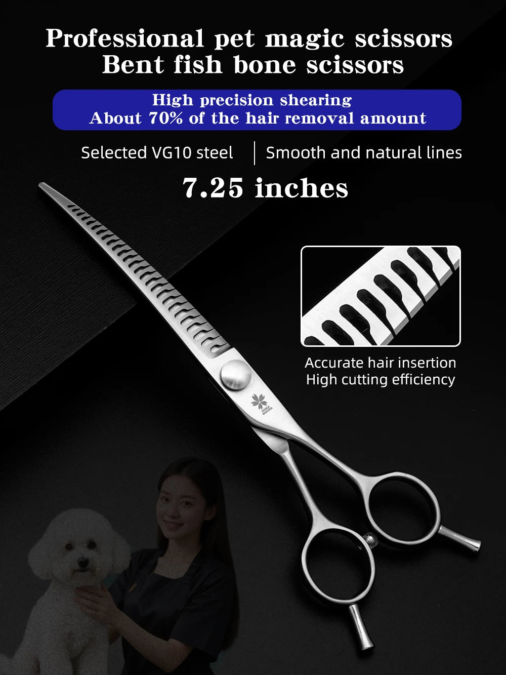 Tijeras mágicas dobladas, tijeras profesionales de belleza para mascotas, tienda de esteticista para recortar acero VG10, recorte Natural de 7,25 pulgadas