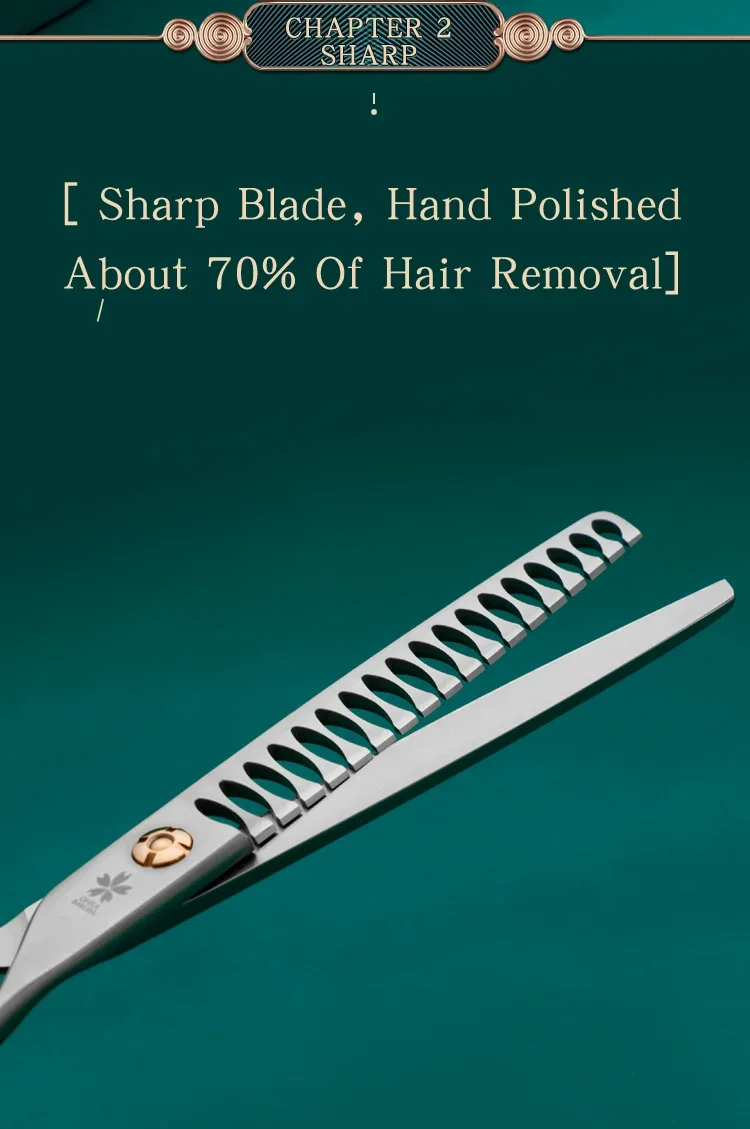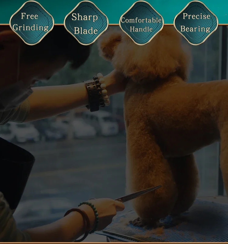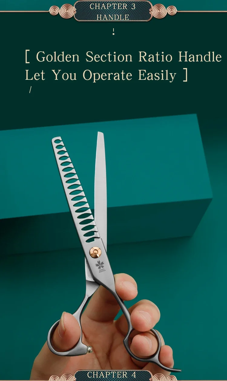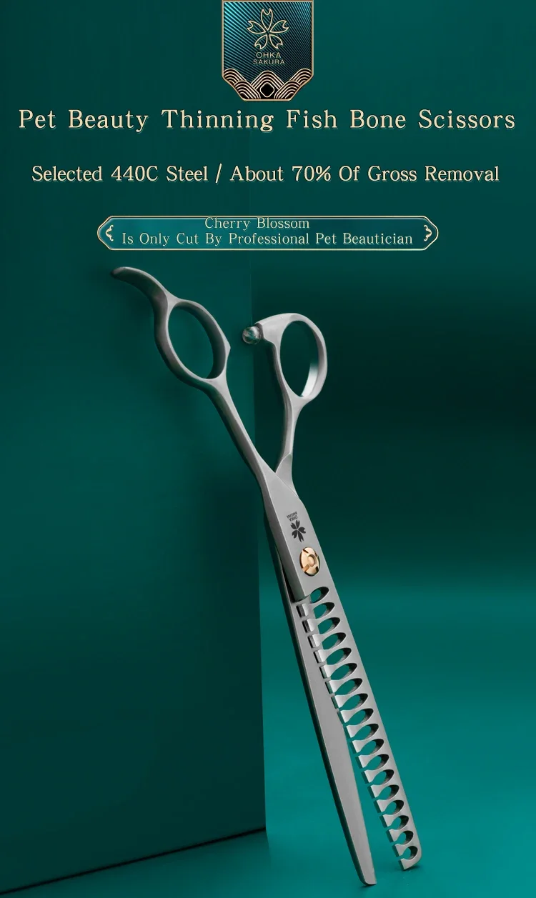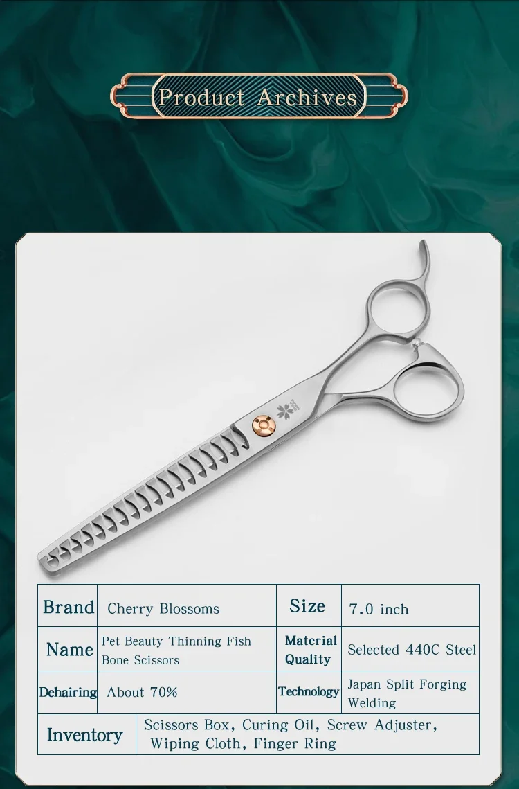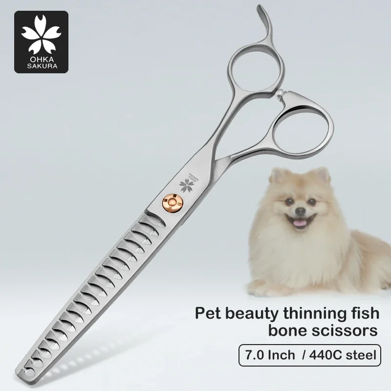 Tijeras de peluquería para mascotas, tijeras de hueso de pescado de 7,0 pulgadas, tornillo dorado de cuatro ojos, tijeras de afeitar y adelgazamiento para perros de peluche 440C domésticas