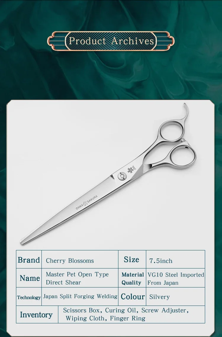 Tijeras profesionales de belleza para mascotas, Tianyang de acero fino Vg10 importado, mismo mango, cizalla directa abierta de 7,5 pulgadas