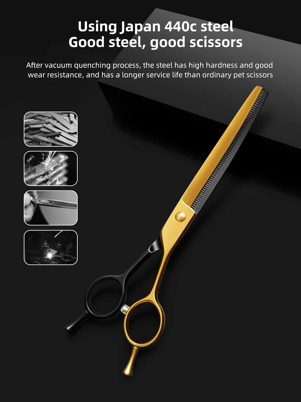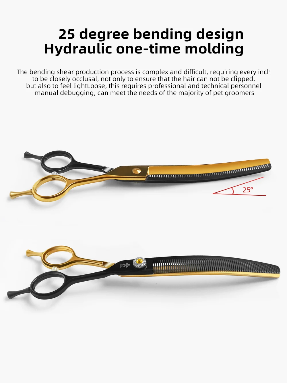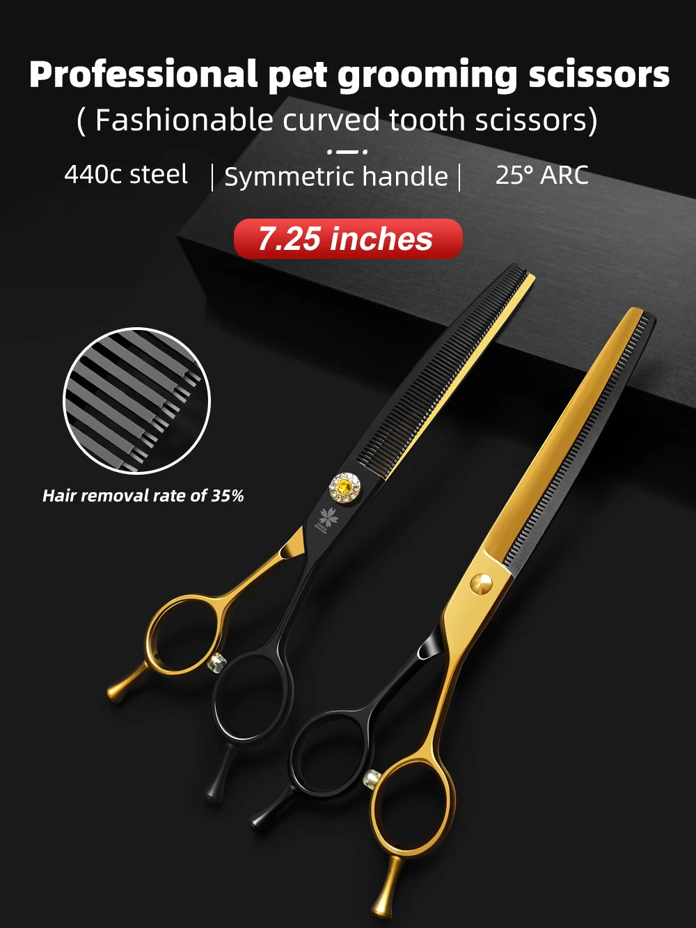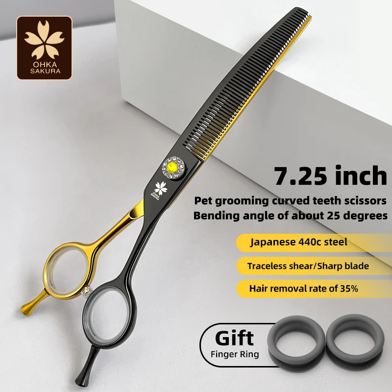Tijeras profesionales para el cuidado de perros, 7,25 pulgadas, color negro y dorado, curvas, más finas, tijeras para perros, acero japonés 440c
