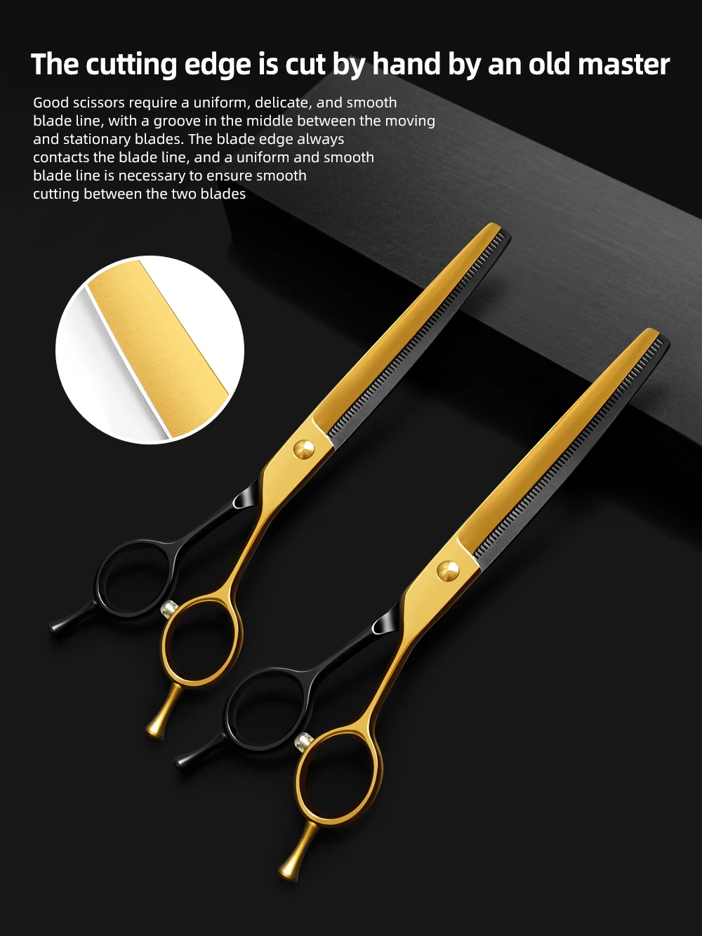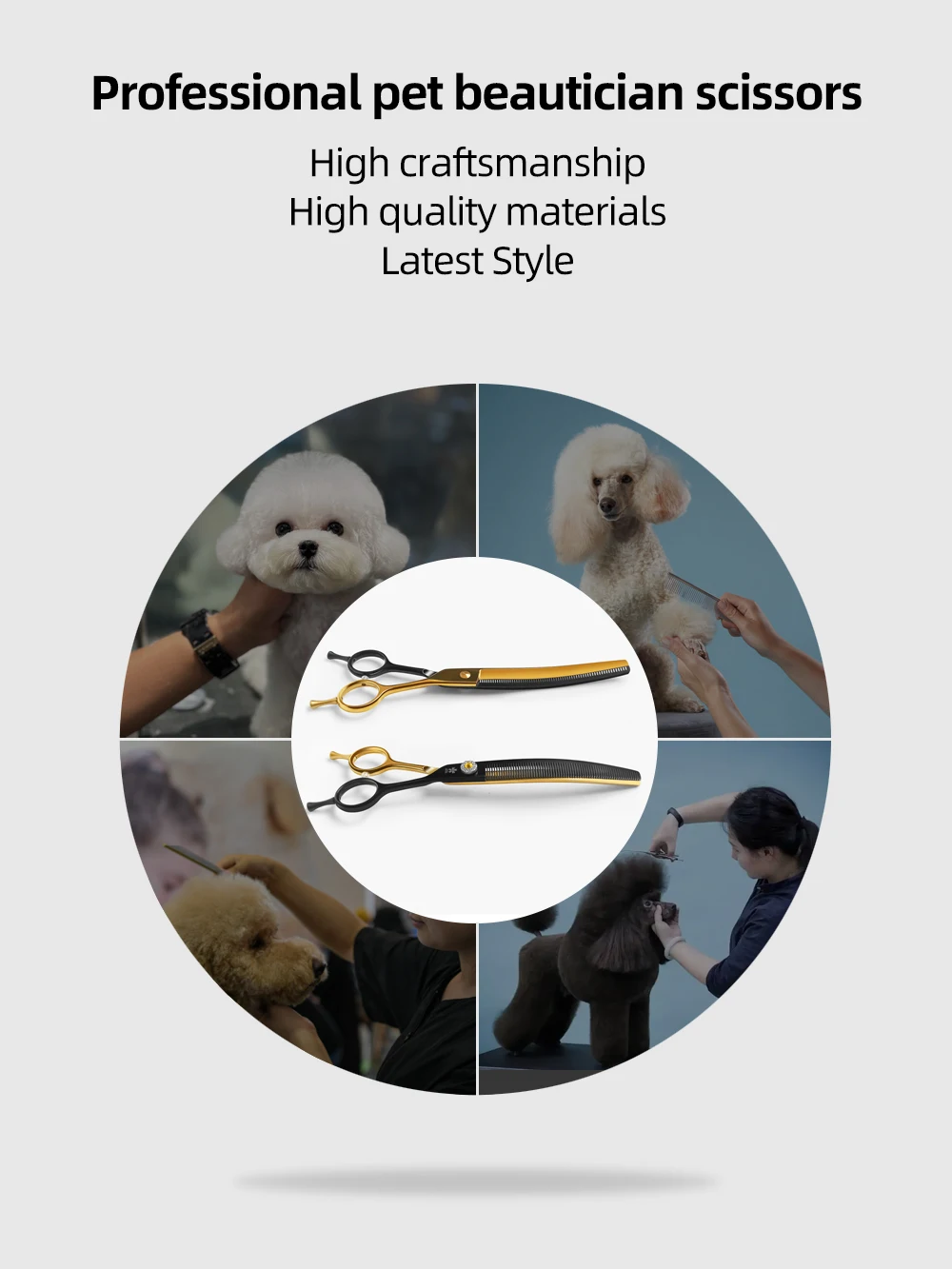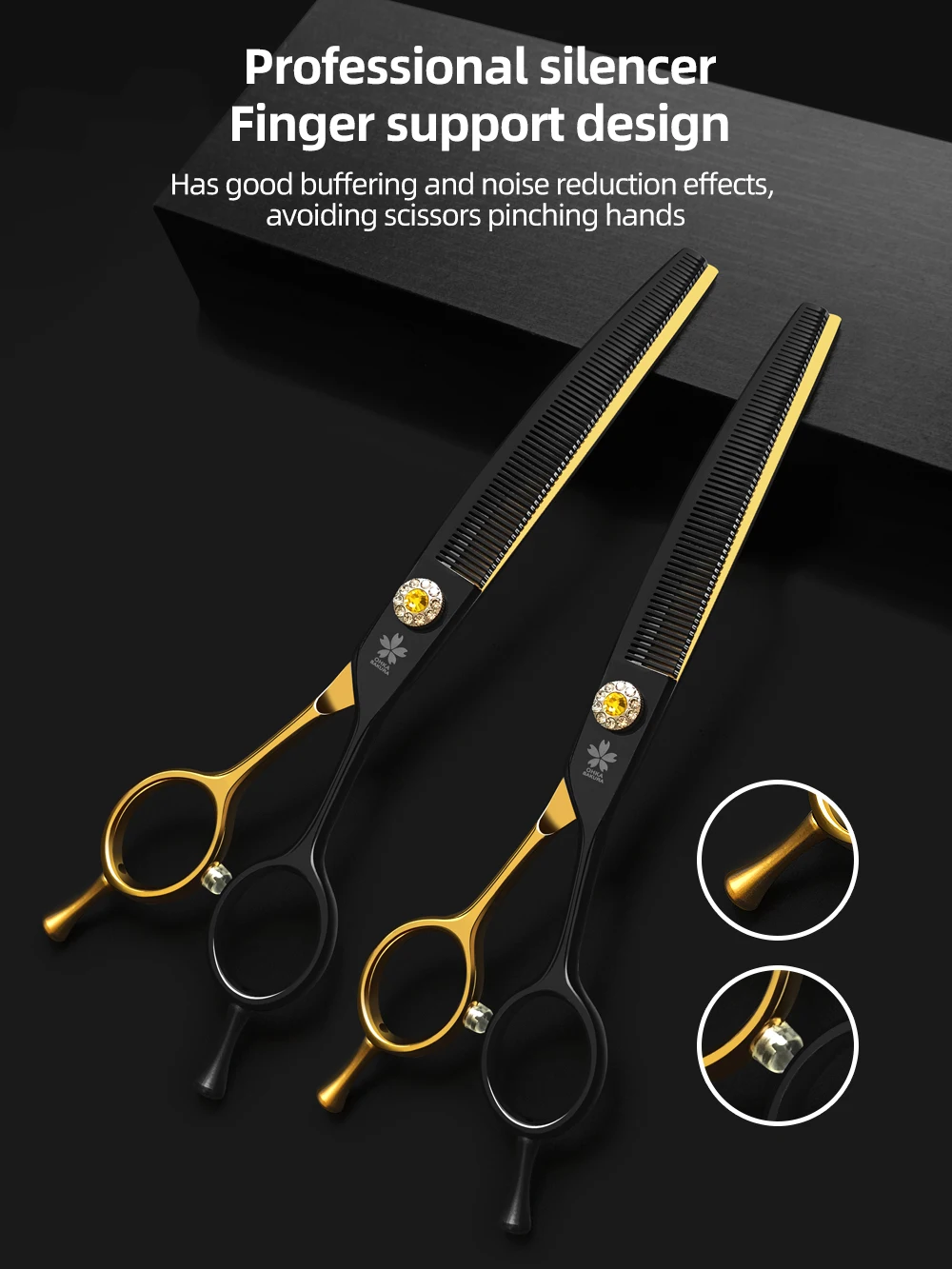 Tijeras profesionales para el cuidado de perros, 7,25 pulgadas, color negro y dorado, curvas, más finas, tijeras para perros, acero japonés 440c