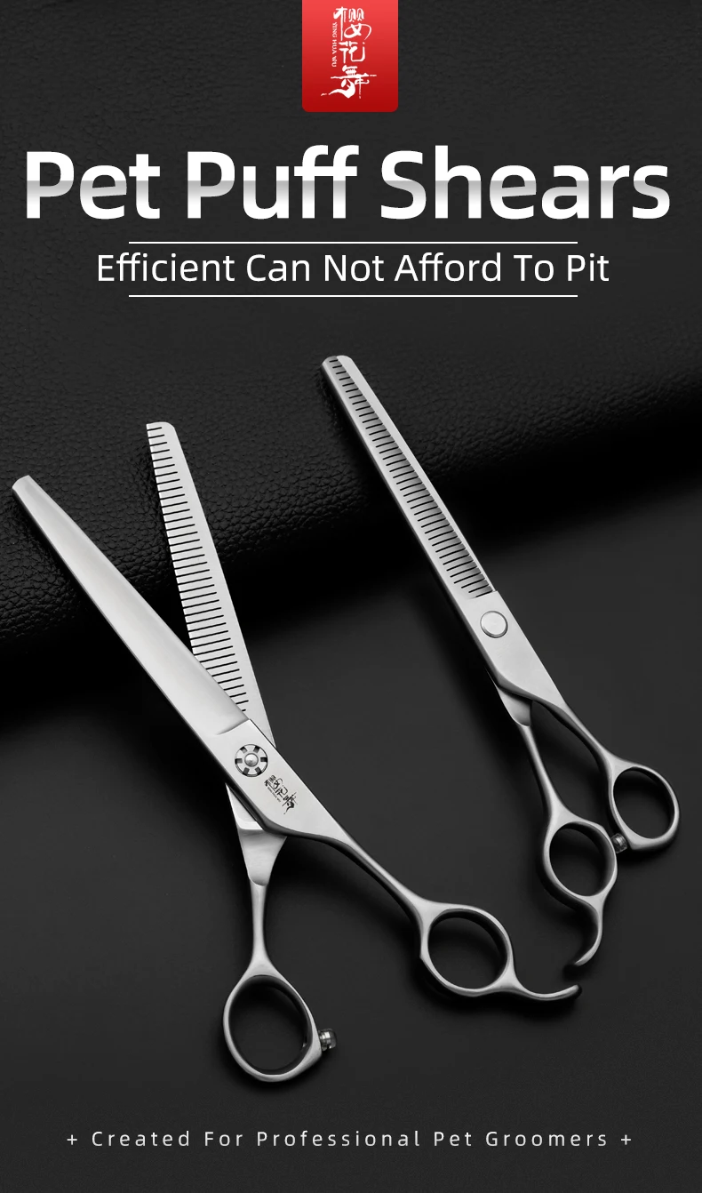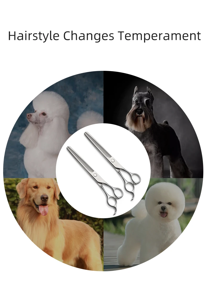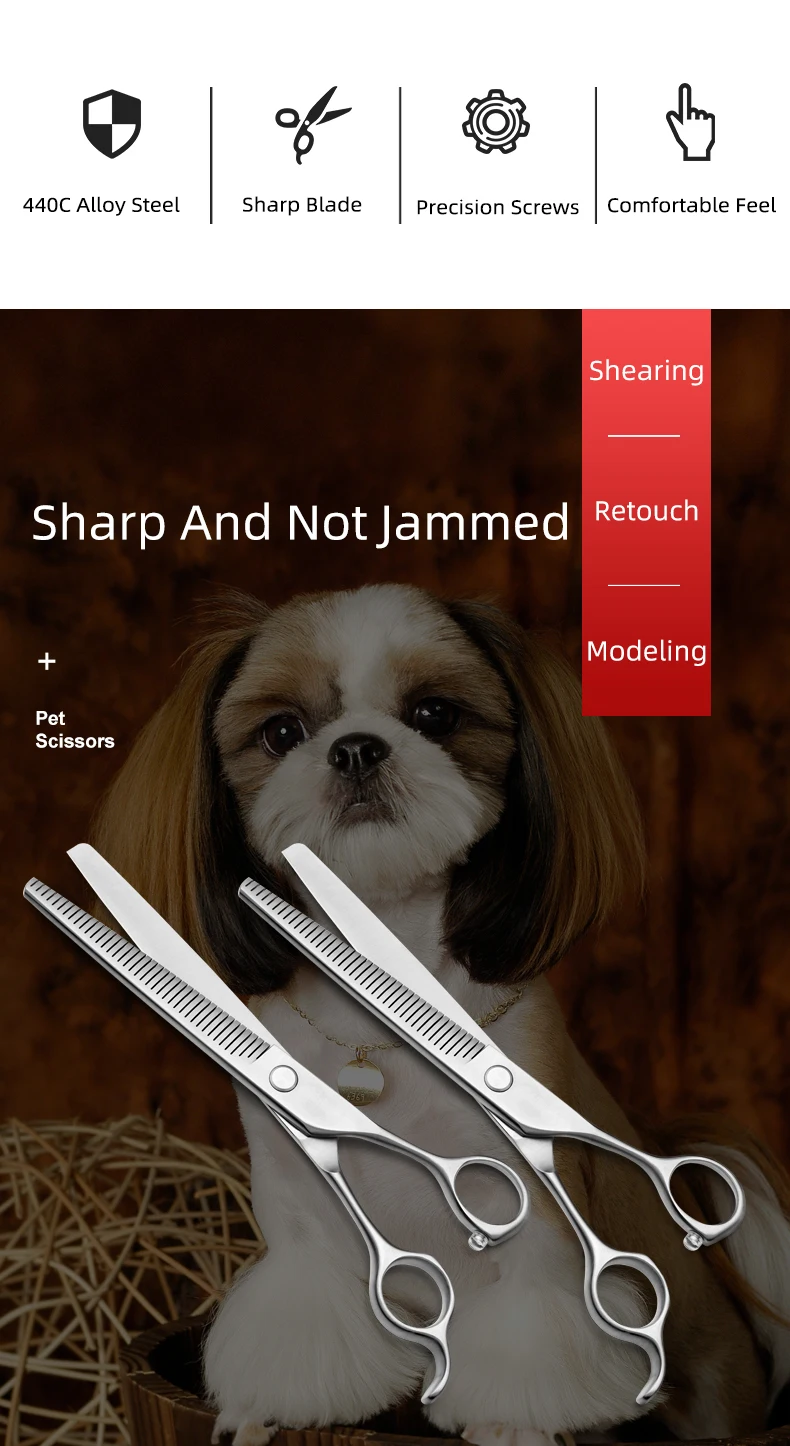 Tijeras profesionales para el cuidado de mascotas, tijeras de adelgazamiento de tipo abierto, tijeras de aseo de peluche de tacto integral para el cuidado de los animales