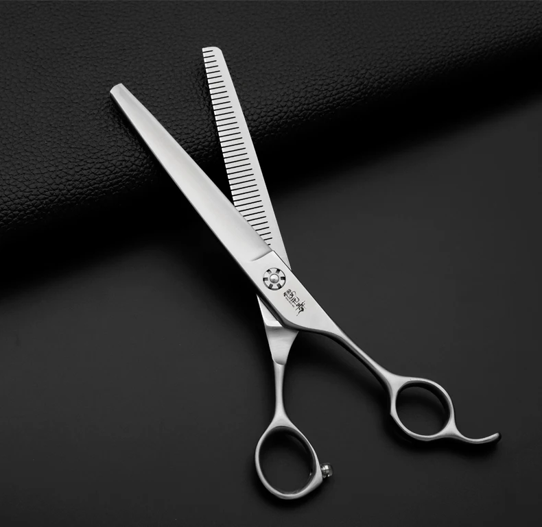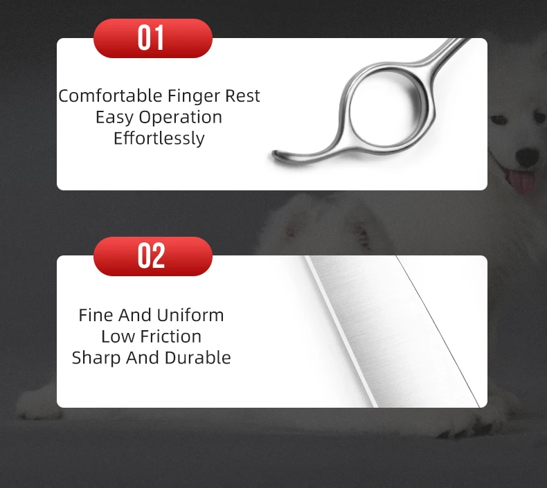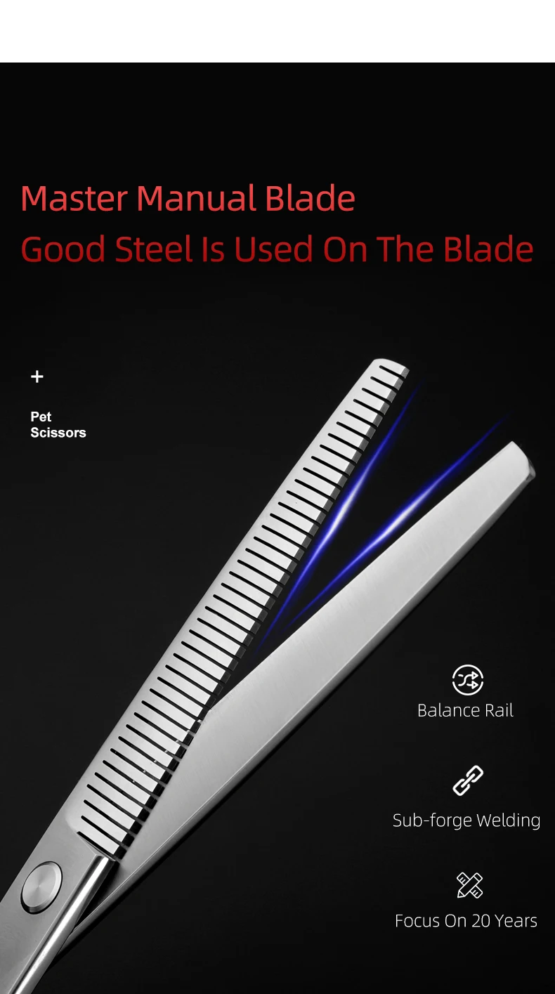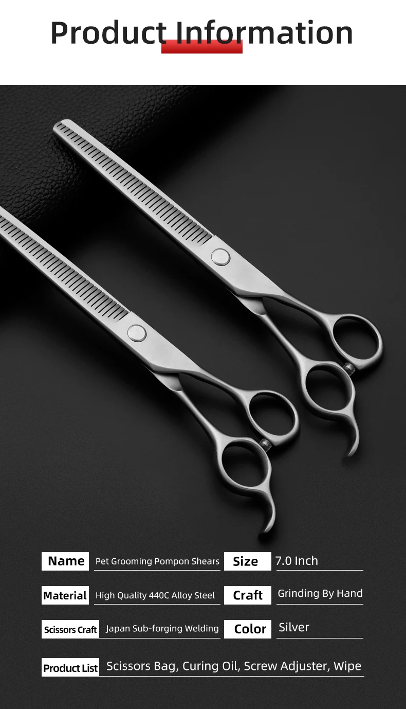 Tijeras profesionales para el cuidado de mascotas, tijeras de adelgazamiento de tipo abierto, tijeras de aseo de peluche de tacto integral para el cuidado de los animales