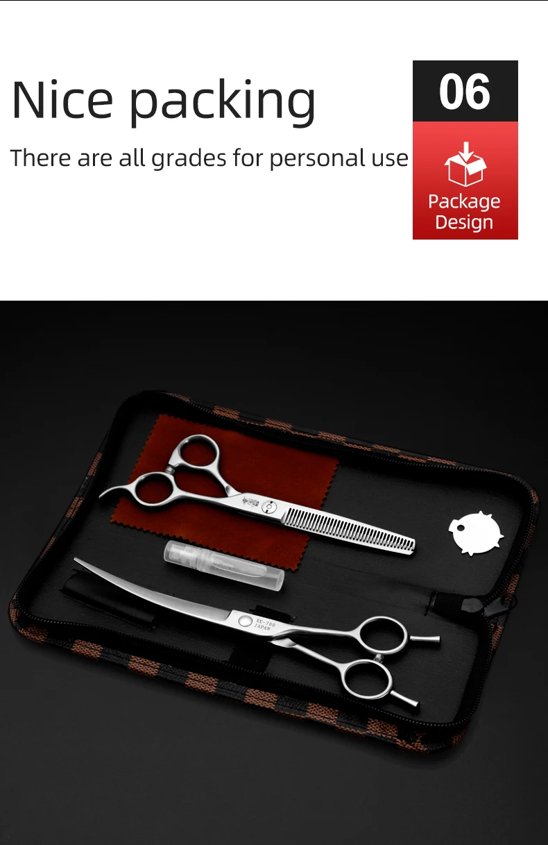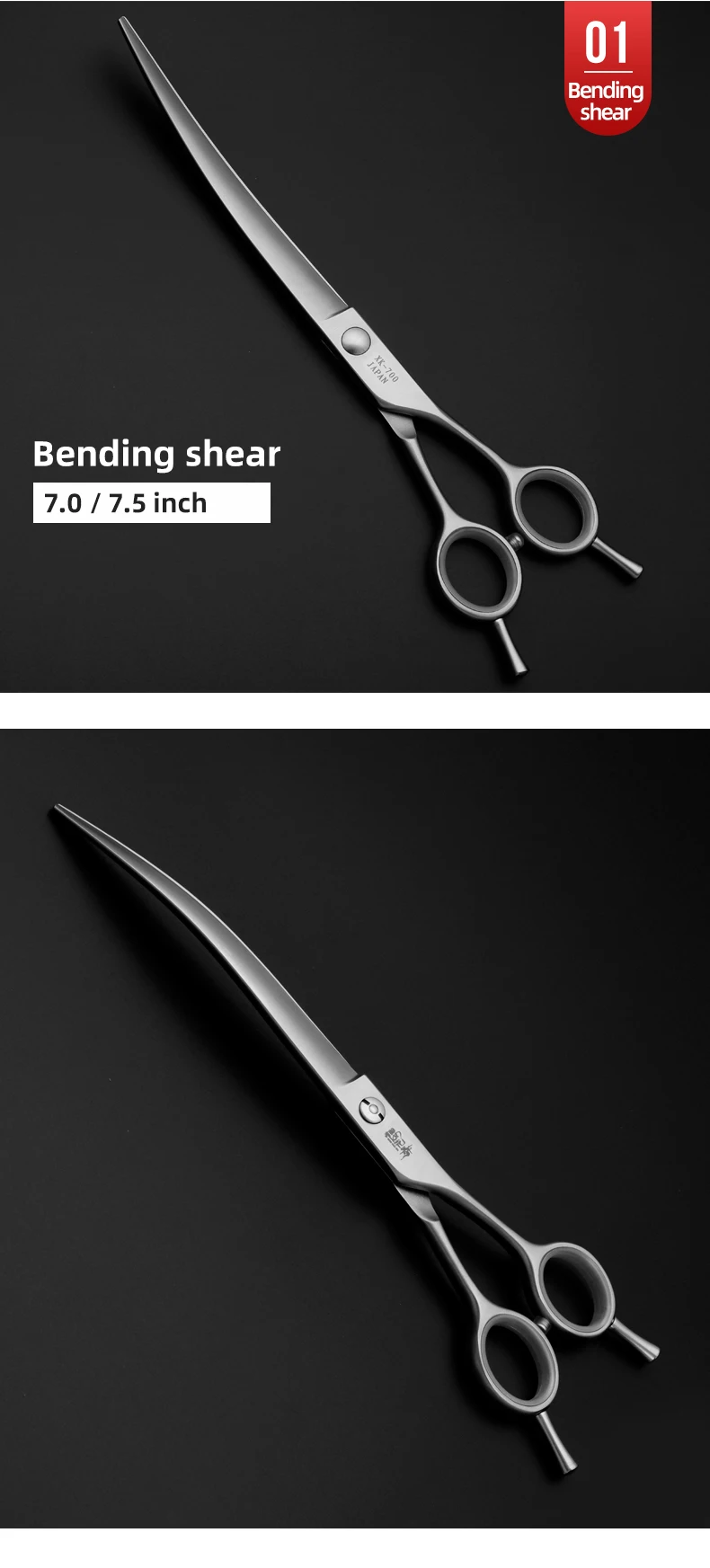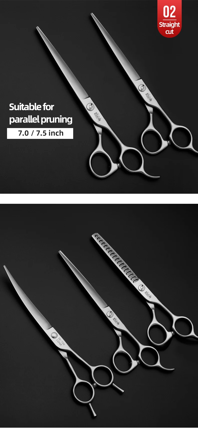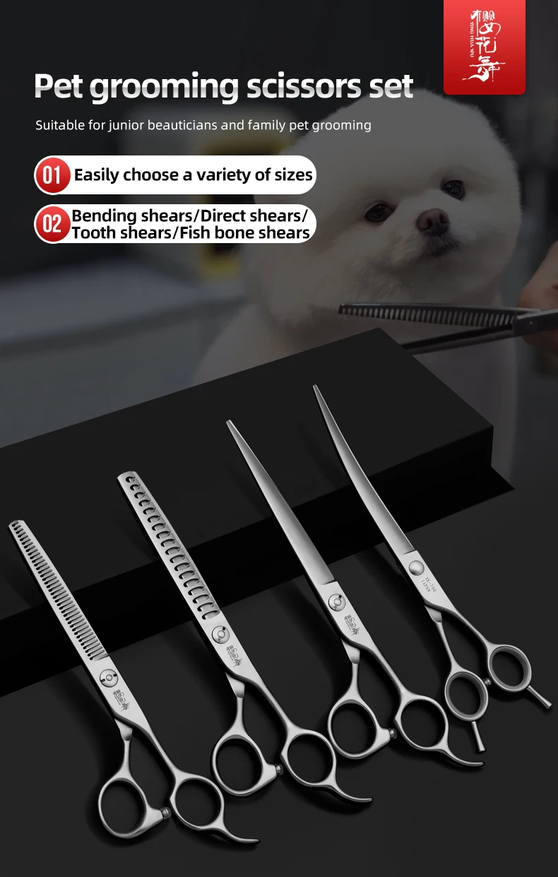 Tijeras profesionales para mascotas, corte recto, tijeras curvas, adelgazamiento, artefacto para pelo de perro, juego de tijeras de peluquería autocortantes
