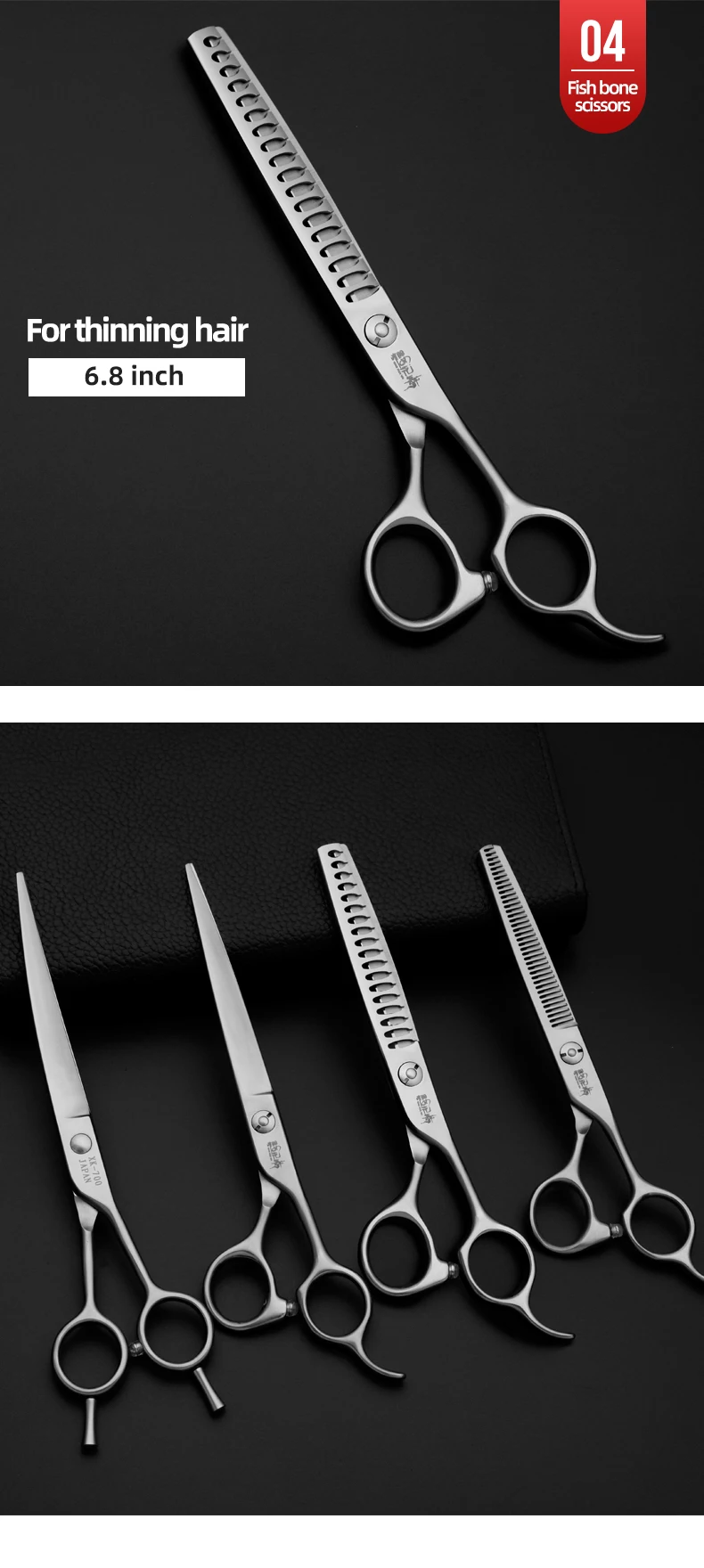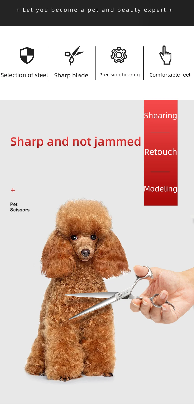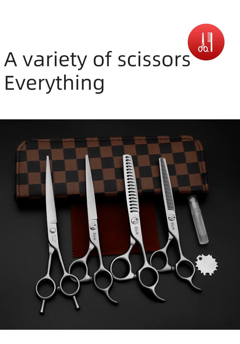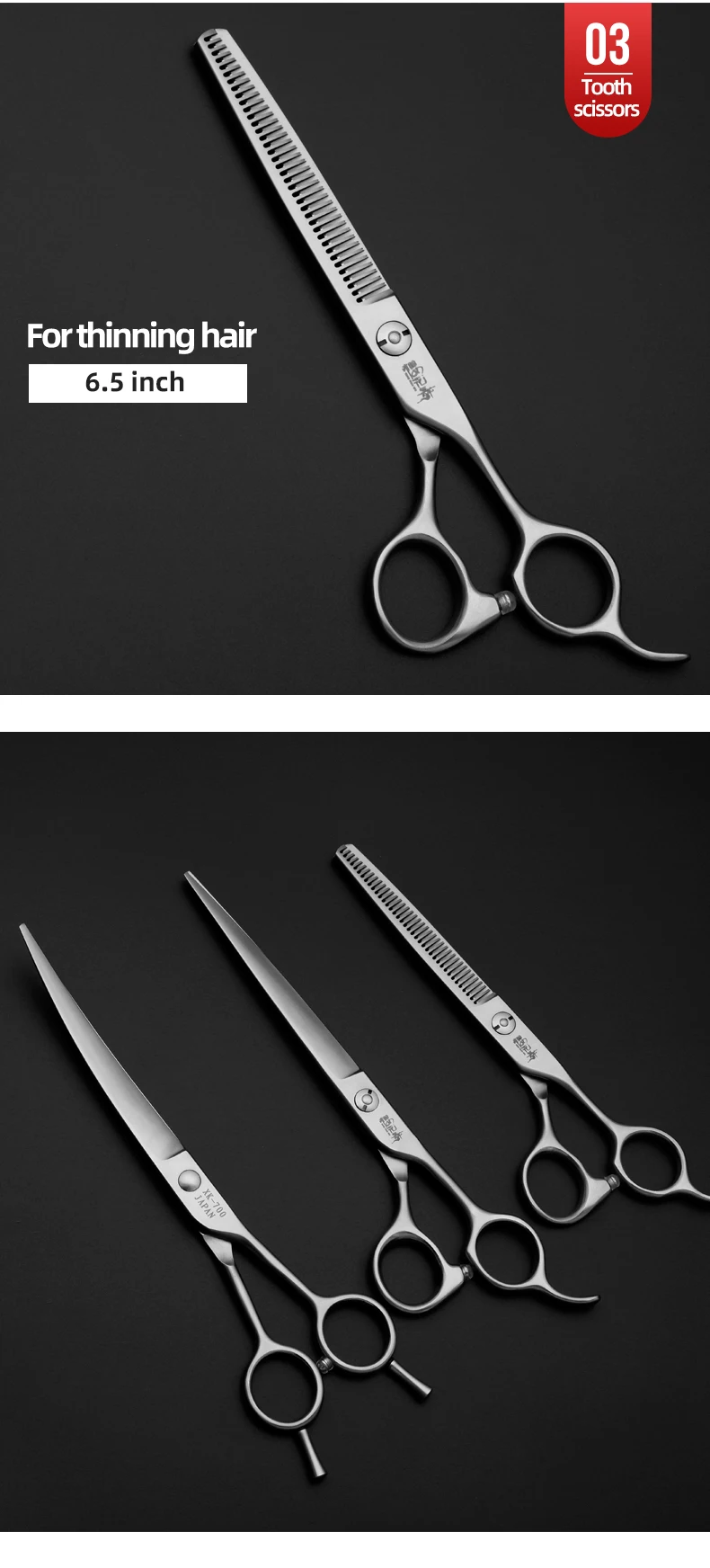 Tijeras profesionales para mascotas, corte recto, tijeras curvas, adelgazamiento, artefacto para pelo de perro, juego de tijeras de peluquería autocortantes