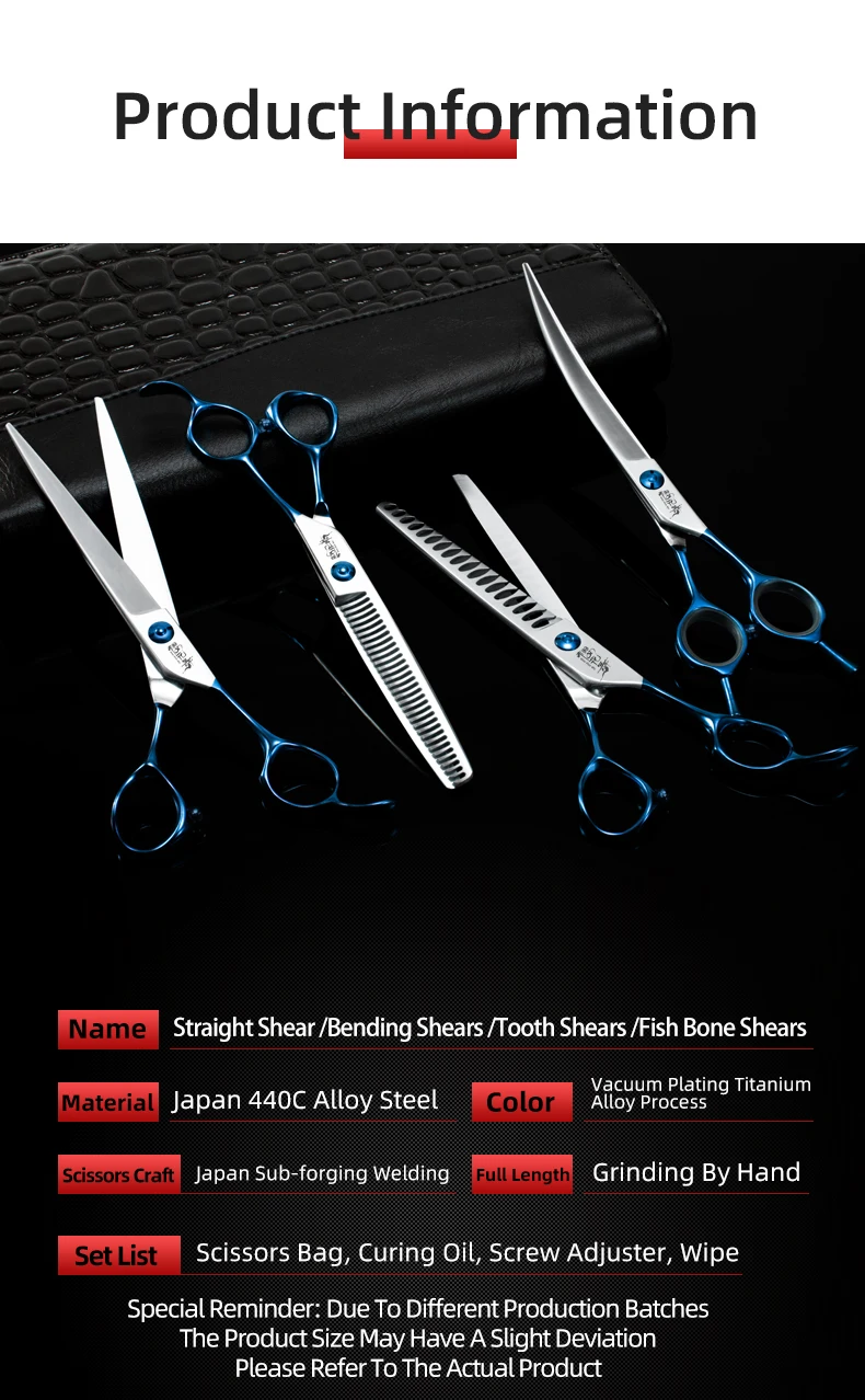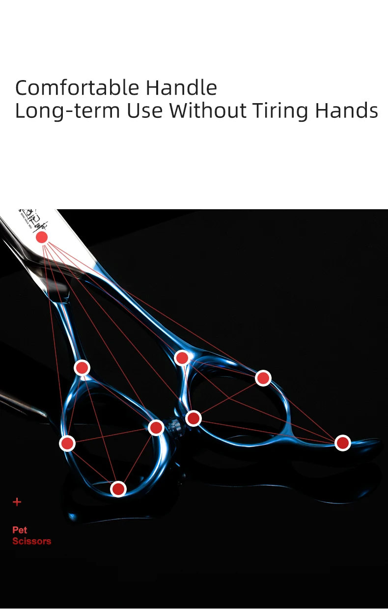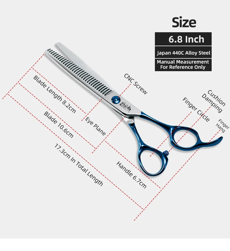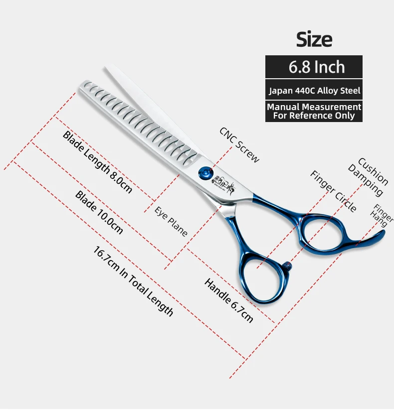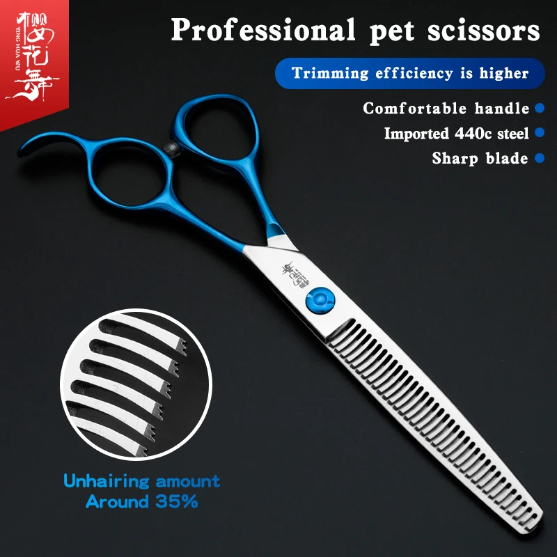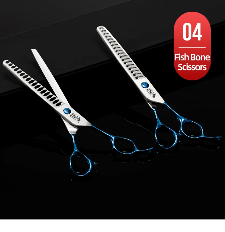 Tijeras profesionales de peluquería con mango azul, herramientas de aseo para mascotas con logotipo personalizable, tijeras para dientes de perros