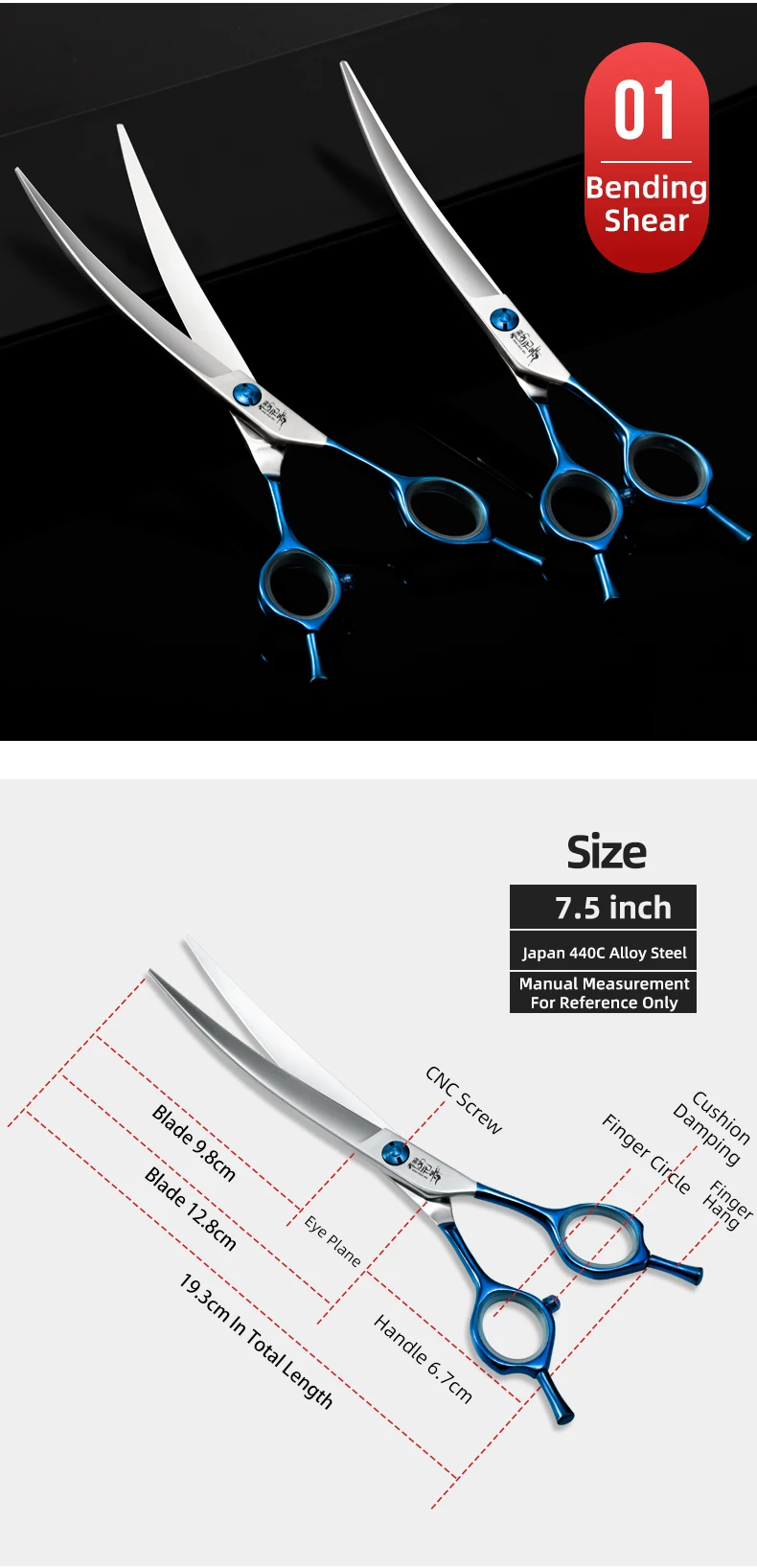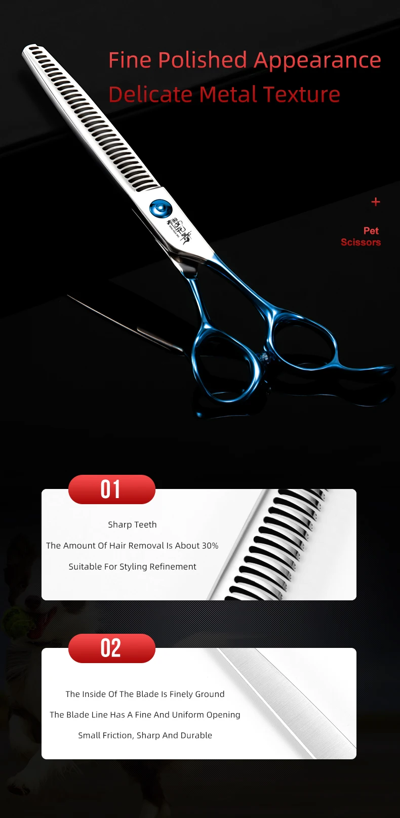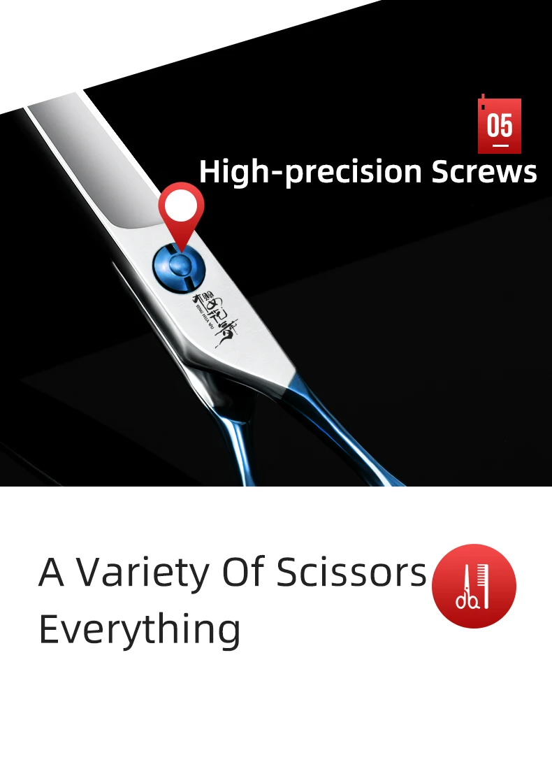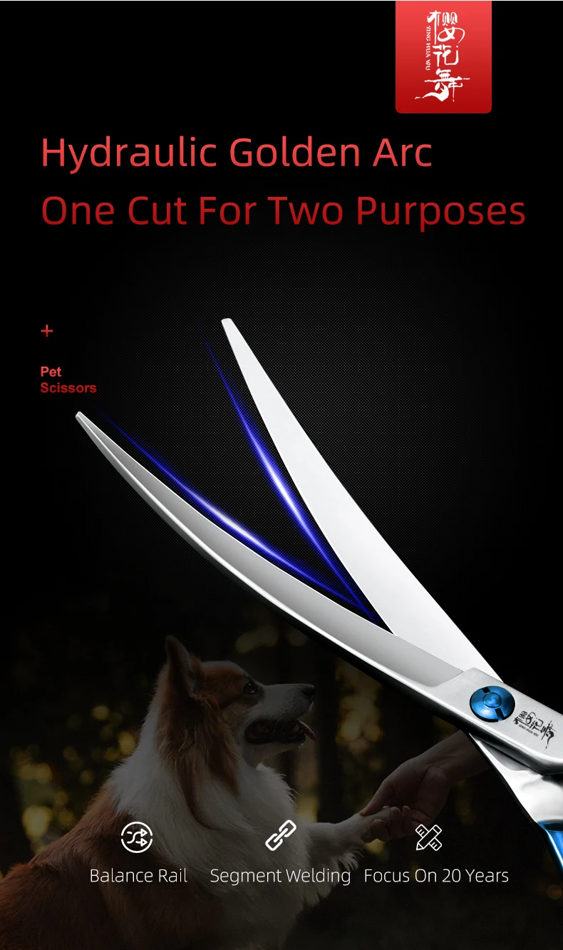 Tijeras profesionales de peluquería con mango azul, herramientas de aseo para mascotas con logotipo personalizable, tijeras para dientes de perros
