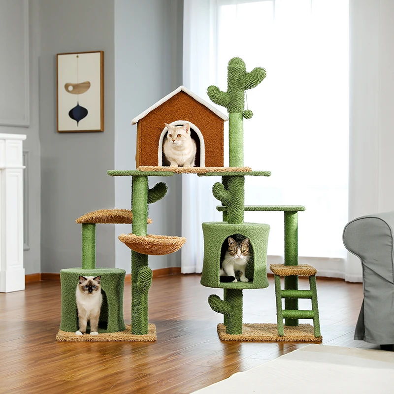 Mordern gato árbol rascador Post Casa del gato lindo Cactus rascador con nido de condominio muebles de Casa de juego para mascotas