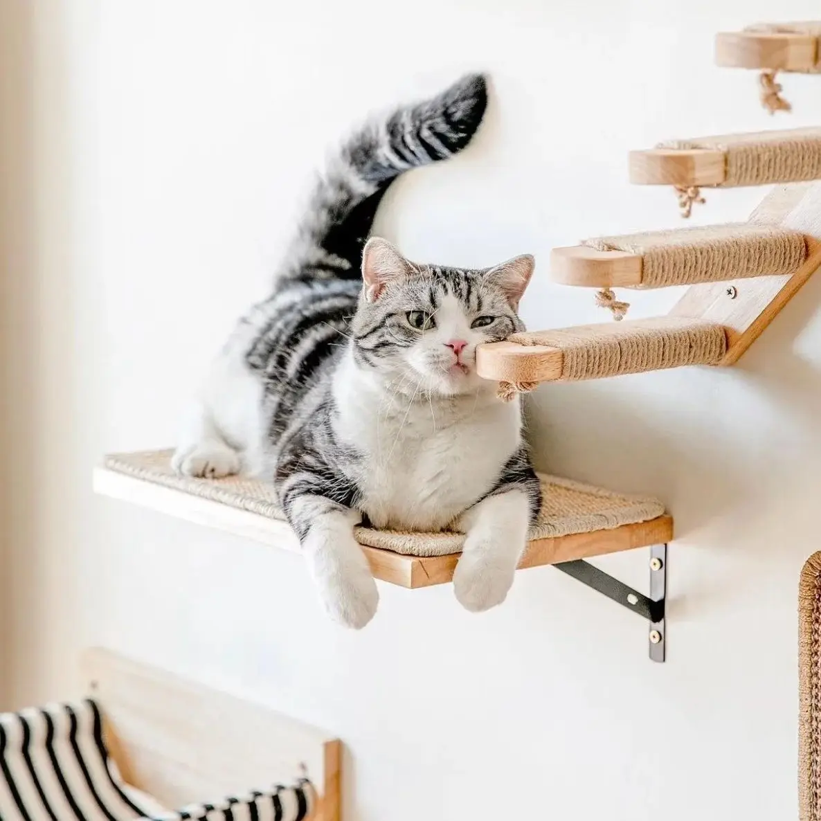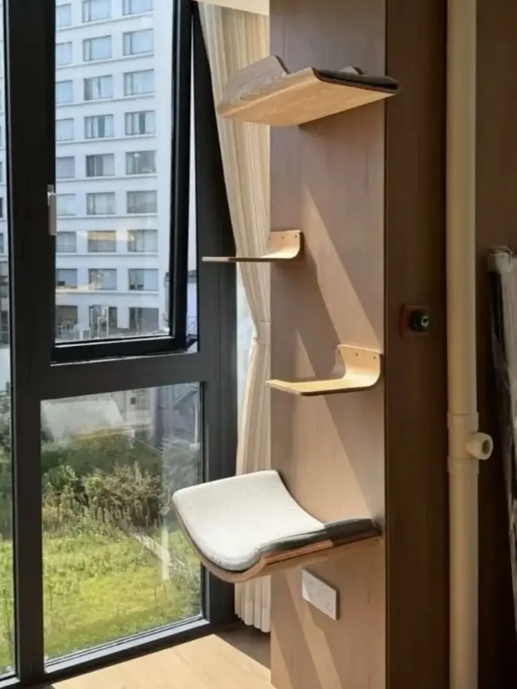 Se pueden combinar e instalar de manera flexible según el espacio de la pared, el diseño del hogar y los hábitos de actividad del gato. Ya sea una unidad pequeña compacta o un espacio grande y espacioso, se puede planificar inteligentemente para aprovechar al máximo el espacio vertical y crear un parque de atracciones exclusivo para gatos único, sin ocupar demasiado espacio en el suelo y mantener limpio el hogar.