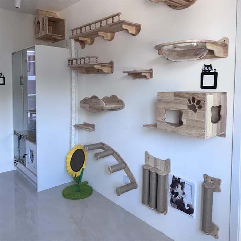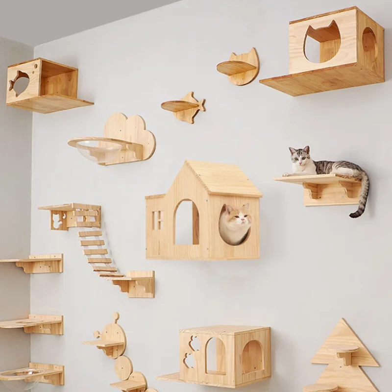 Los estantes de pared para gatos se adaptan al hábito de los gatos de escalar, aumentan el ejercicio y reduciendo la posibilidad de obesidad, lo que es bueno para la salud.Además, le da a los gatos espacio para escalar y evitar estropear la casa.