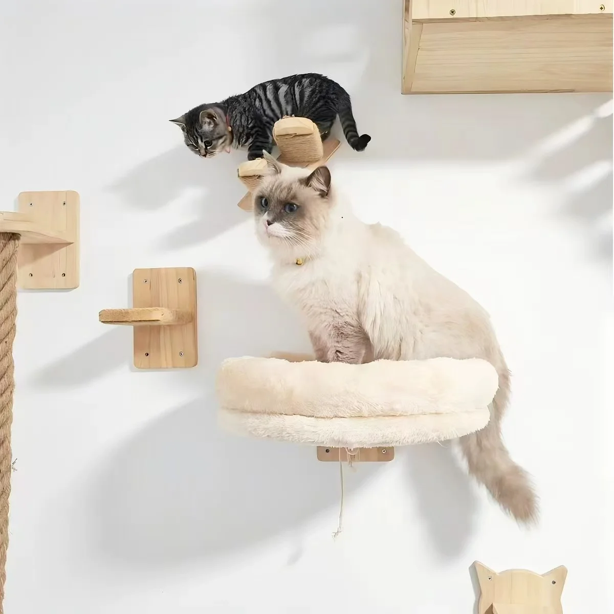 Los estantes para gatos están hechos de madera de pino natural, duradera y no tóxica, inofensiva para gatos y otras mascotas. La tela suave no tiene olores ni decoloración, se puede lavar a máquina. Puede responder a la forma del cuerpo de los gatos, dándoles un abrazo cómodo.