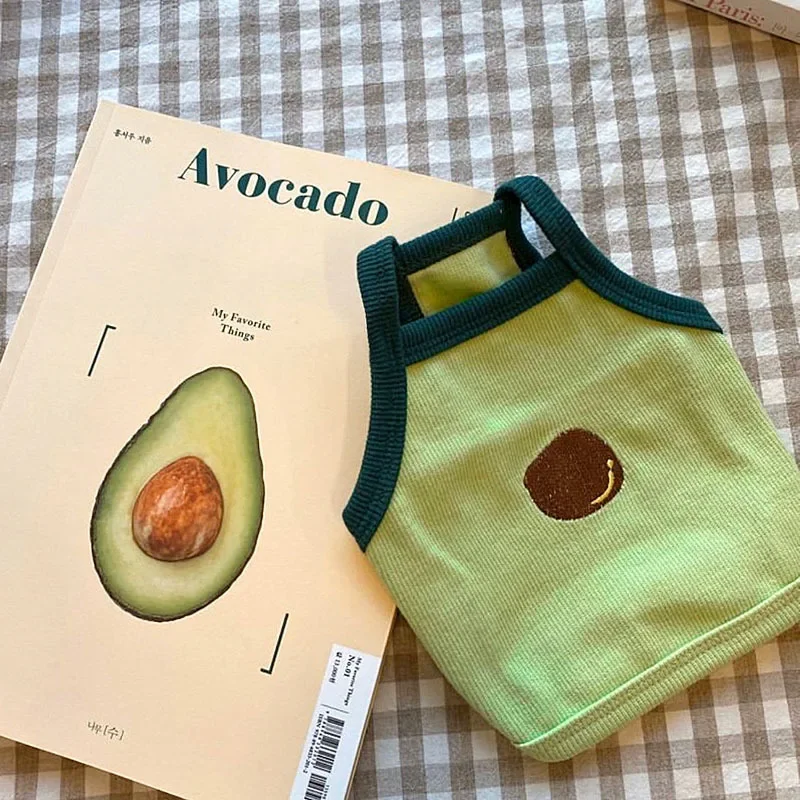 Tirantes de verano para mascotas, chaleco de aguacate para perros y gatos, camiseta con estampado de frutas para cachorros y gatitos, ropa de peluche, abrigo de protección solar, ropa para mascotas