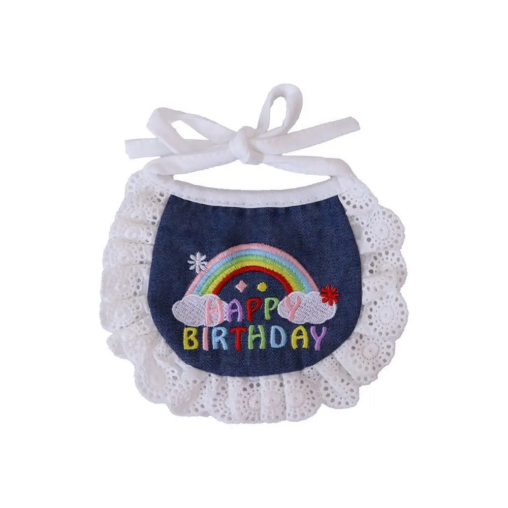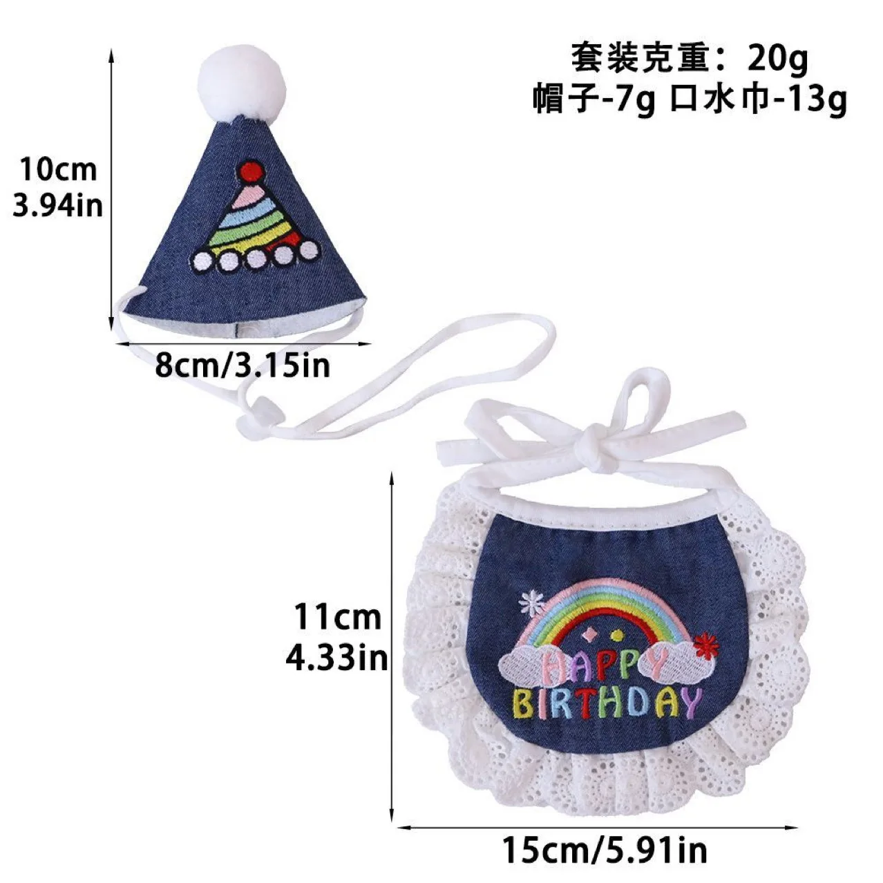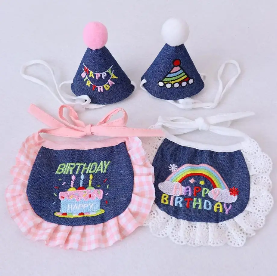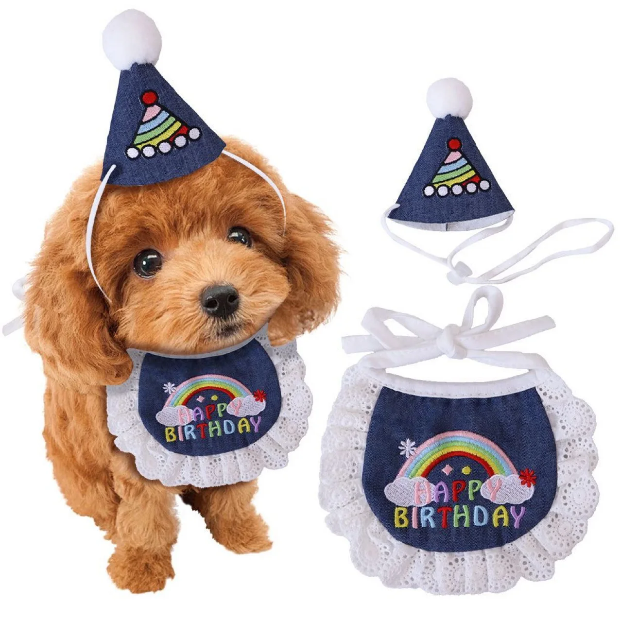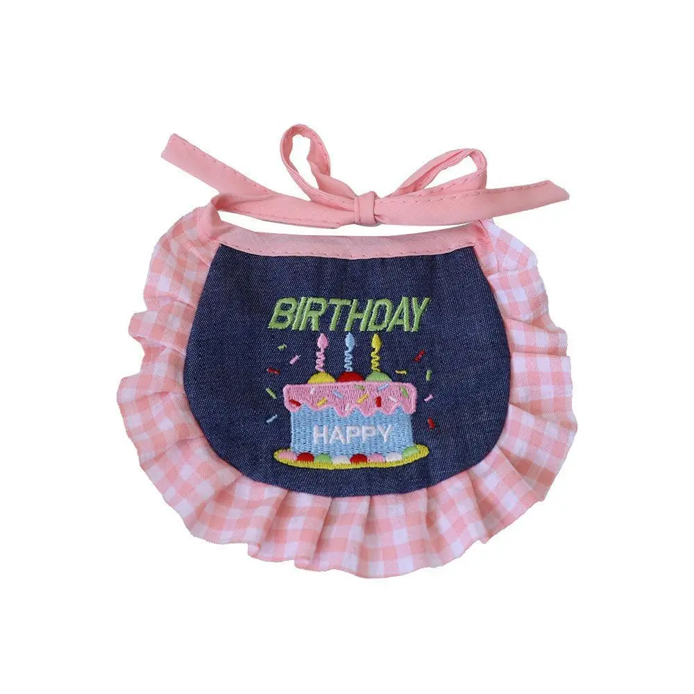 Toalla para babero de cumpleaños para mascotas, conjunto de traje de fiesta, babero bordado para pastel de perro y gato, accesorios para perros pequeños y gatos