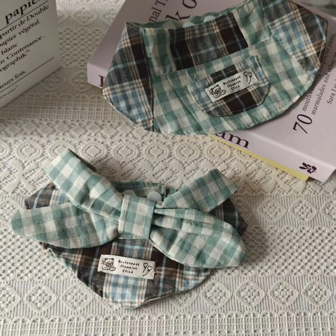 Toalla con lazo a cuadros para mascotas, bufanda para gatos, decoración para perros, corbata para perros pequeños y medianos, accesorios para cachorros pequeños
