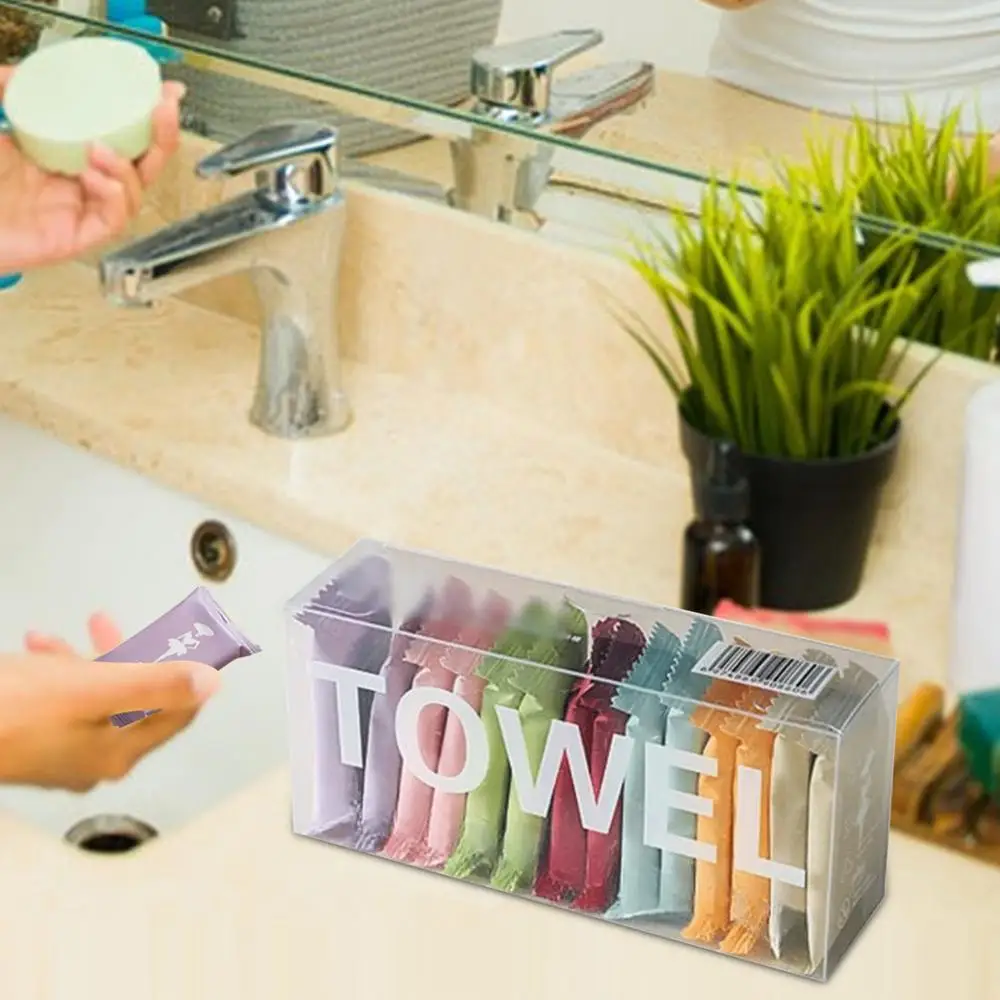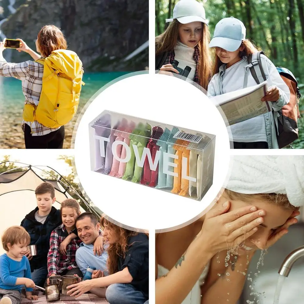 Cada juego incluye catorce tabletas de toallas comprimidas portátiles hechas de algodón suave que es a la vez liviano y muy absorbente.Diseñadas para actividades al aire libre como acampar, hacer caminatas y practicar deportes, estas toallitas también funcionan bien durante viajes a la playa, visitas o sesiones en salones de belleza.