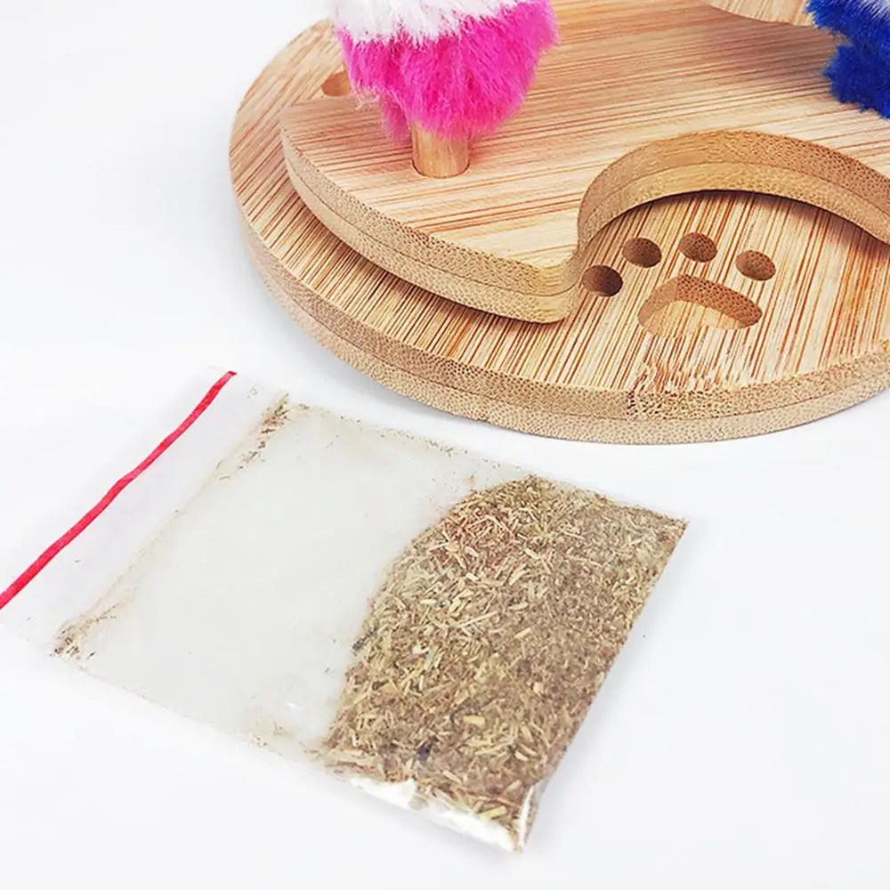4. Materiales respetuosos con el medio ambiente: fabricado con madera resistente y con materiales ecológicos, este juguete carrusel para gatos proporciona entretenimiento duradero para su mascota.