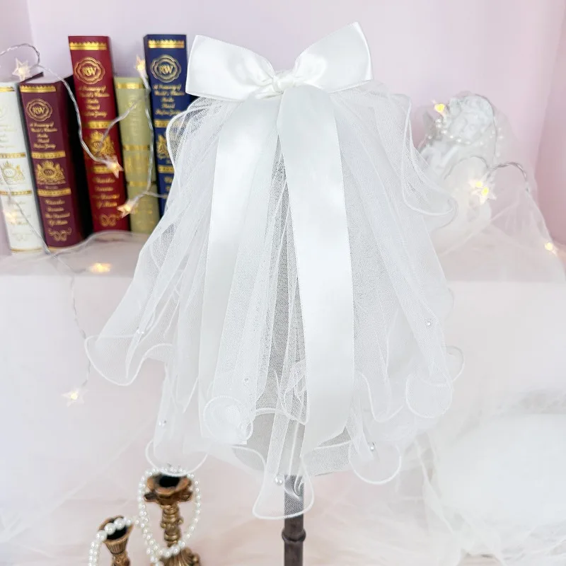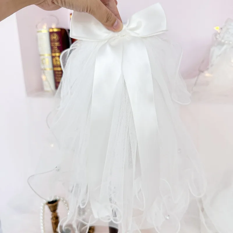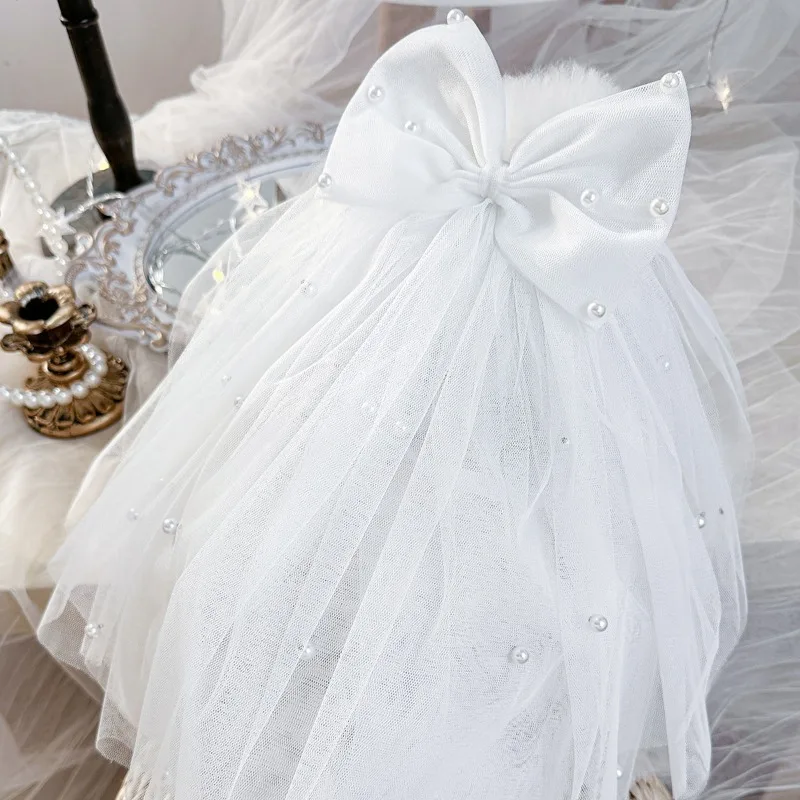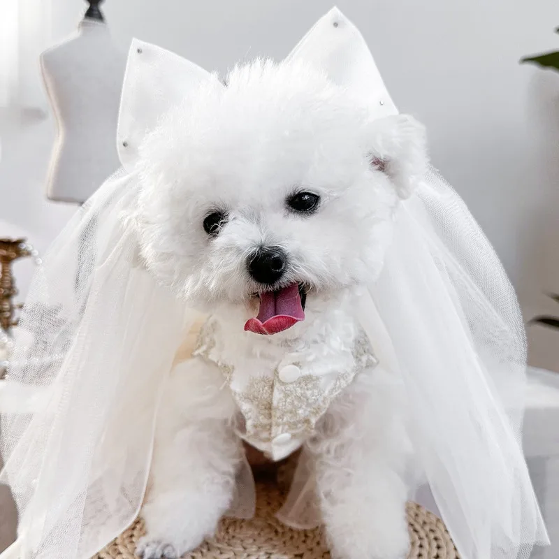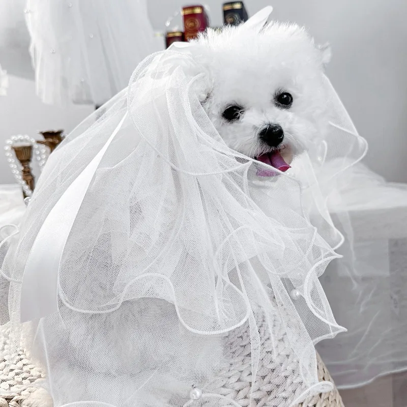 Tocado con lazo para boda, velo para perro, Bandana para gato, cinta de flores de simulación, velo, accesorios para el cabello para perro, fiesta del Día de San Valentín