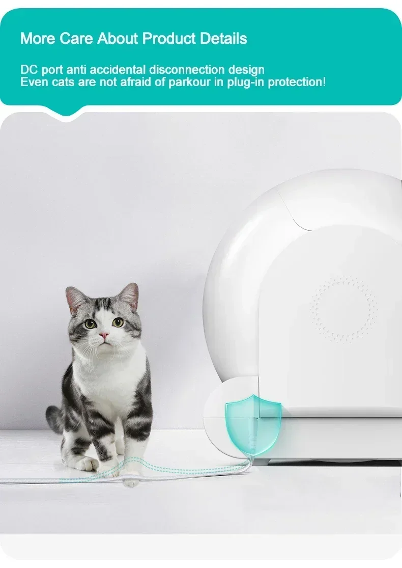 4.Control de aplicación: la caja de arena para gatos autolimpiante automática se puede conectar a la red para usar la aplicación para control remoto, cuando vaya de viaje y aún puede limpiar la caja de arena dondequiera que esté.Y esta aplicación te permite conocer los datos de uso del gato y cuando la caja de arena está llena.Además, puede realizar configuraciones más detalladas para el modo de limpieza o el tipo de arena para gatos, etc.5.Diseño de estructura patentado: el diseño de la caja de arena para gatos está inspirado en la cápsula de reentrada lunar, tiene una estructura patentada que integra el contenedor de arena y el cilindro, para que su gato nunca quede atrapado.Y la altura de entrada frontal de la caja de arena para gatitos es de 5,9 pulgadas, amigable con los gatos de piernas cortas.6.Para una variedad de arena para gatos: la caja de arena para gatitos tiene un filtro especialmente diseñado con una innovadora estructura en forma de rayo, adecuada para usar con arena para plantas, arena dobonita, arena de arcilla y todos los demás tipos de arena para gatos en el mercado (EXCEPTO LECTORES PARA GATOS DE CRISTAL)