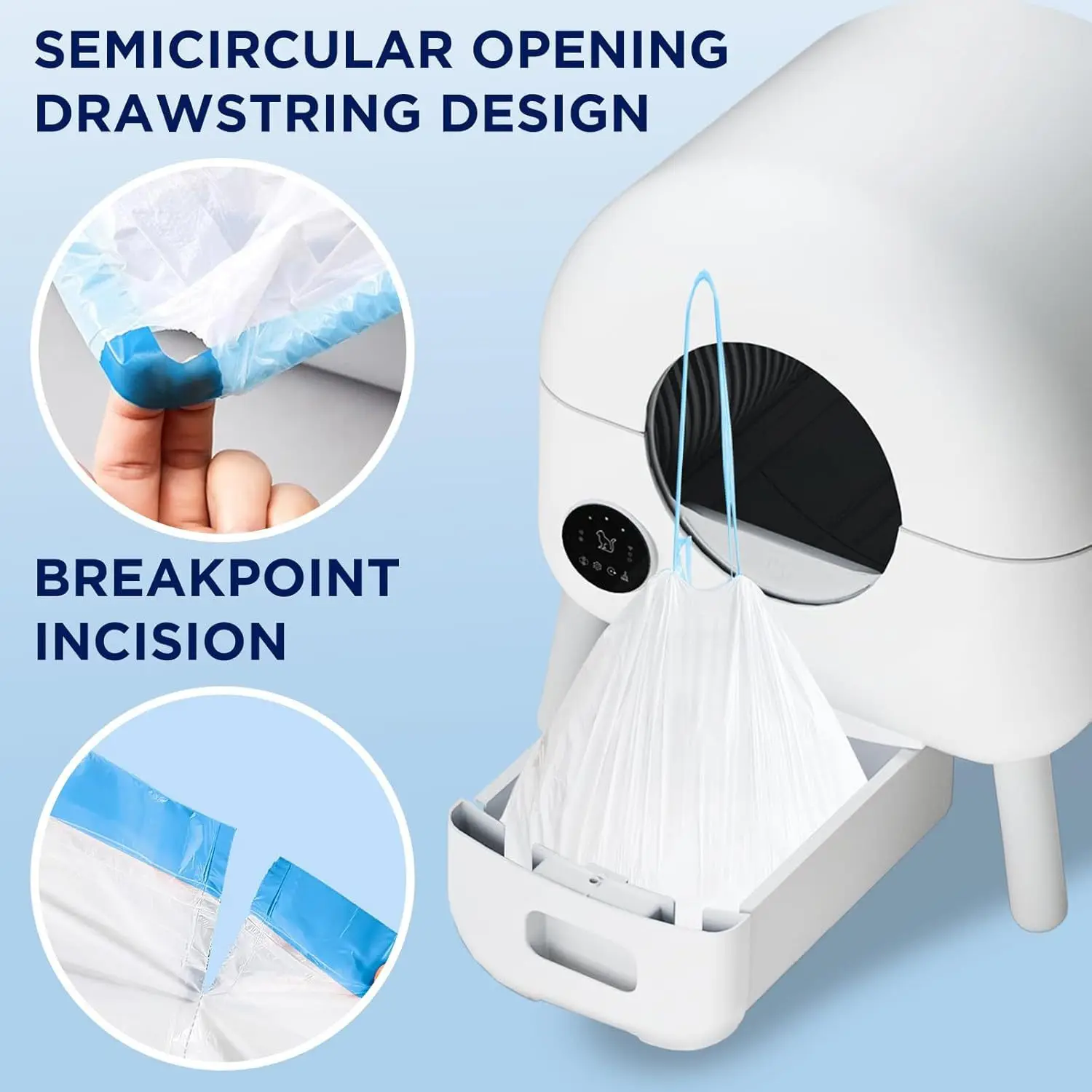 Estas bolsas para excrementos de mascotas son imprescindibles para los dueños de mascotas. Están fabricados con materiales de alta calidad, lo que garantiza durabilidad y rendimiento a prueba de fugas, por lo que no tiene que preocuparse por ningún desorden. Las bolsas son fáciles de quitar de los rollos, lo que las hace cómodas de usar cuando sale a pasear a su mascota. Con una cantidad suficiente en cada paquete, pueden durar mucho tiempo. Se adaptan a la mayoría de las cajas de arena estándar, como se muestra en la imagen, lo que permite una limpieza sin problemas de la caja de arena de su gato. Mantener limpio su espacio vital y sus áreas al aire libre nunca ha sido tan fácil con estas bolsas para excrementos de mascotas confiables y fáciles de usar.