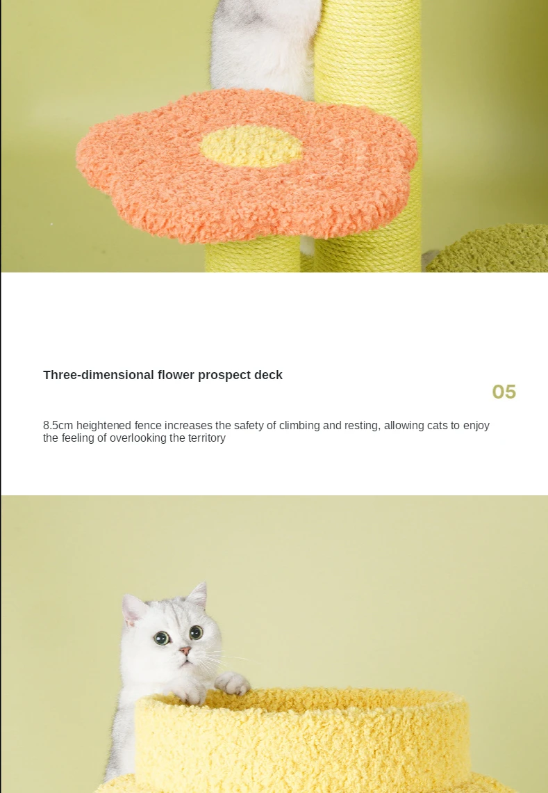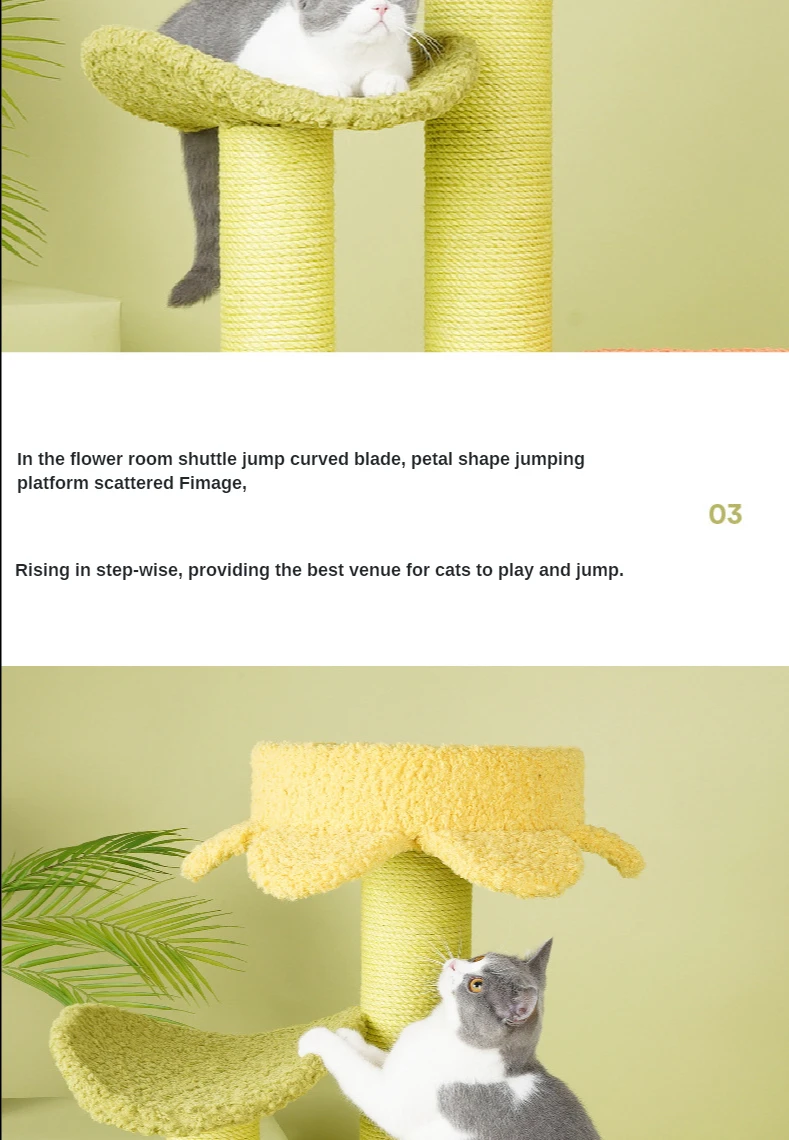 The multi-level design offers various heights for your cat to jump, climb, and play, promoting physical activity and mental stimulation.