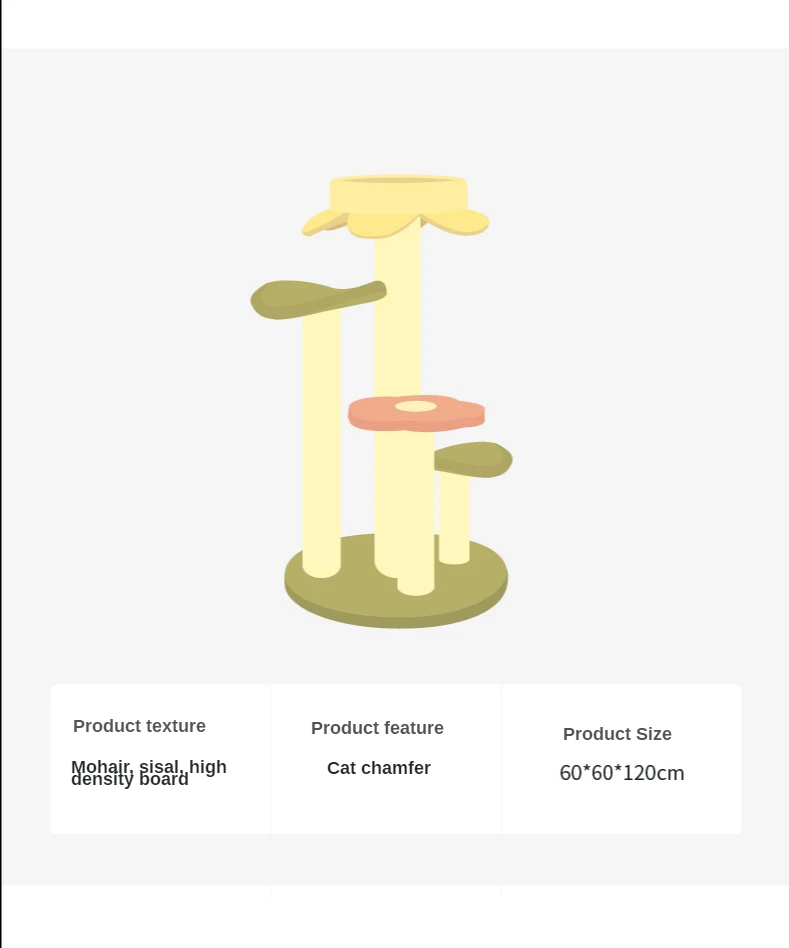 Product name: forest cat climbing frame cat litter cat tree Product material: high quality wood & sisal * high quality plush Product size: 60*60*120cm Product weight: about 14KG Reminder: This product is made of solid wood material. The product is heavy, wear-resistant and scratch-resistant. It provides a long-term play area for cats. The weight of the package is very heavy and the shipping fee is high. You can get other discounts if you are willing to accept other logistics methods. Customer Service Understanding