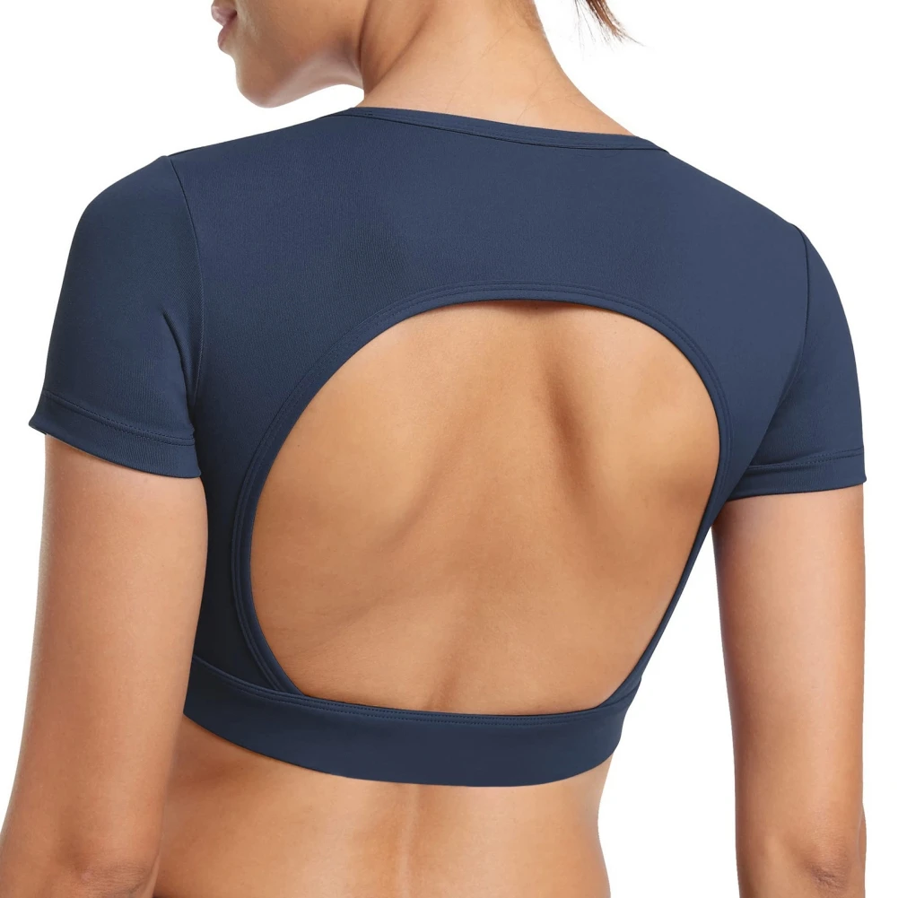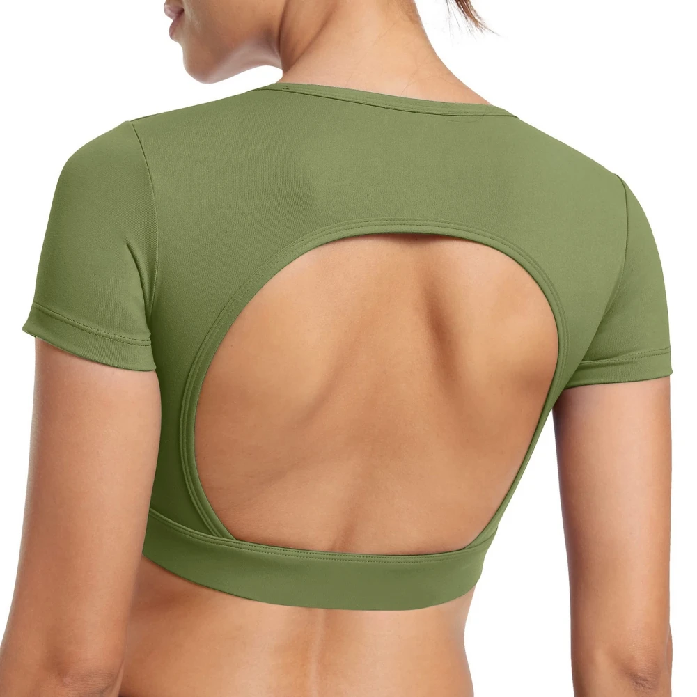4.[Tops de Yoga de entrenamiento para ocasiones]: Combina con cualquiera de nuestros pantalones para un aspecto casual y elegante. Nuestra camisa de entrenamiento de manga corta sin espalda es adecuada para fitness, ejercicio, gimnasio, yoga, correr, casual, pasar el rato, andar en bicicleta y más.