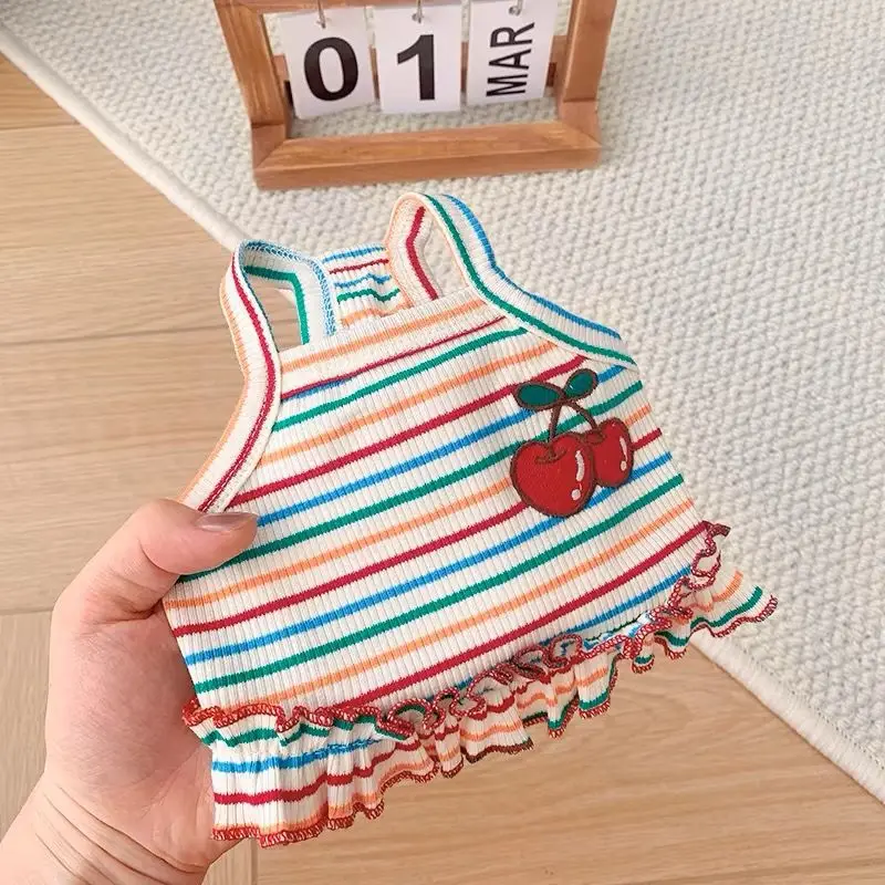 Top con tirantes a rayas para mascotas, vestido de peluche para gatos, Top para perros, camiseta sin mangas fina de Yorkshire, vestidos para perros pequeños, ropa para cachorros