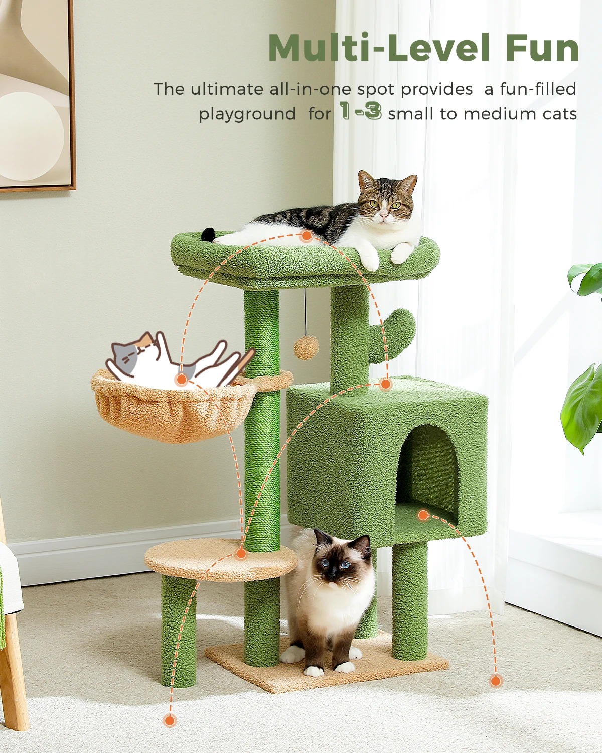 H90CM Cactus Cat Tree Tower Cat Condo para interior con percha acolchada grande Hamaca cómoda Rascador Bola colgante rascador gato arbre à chat