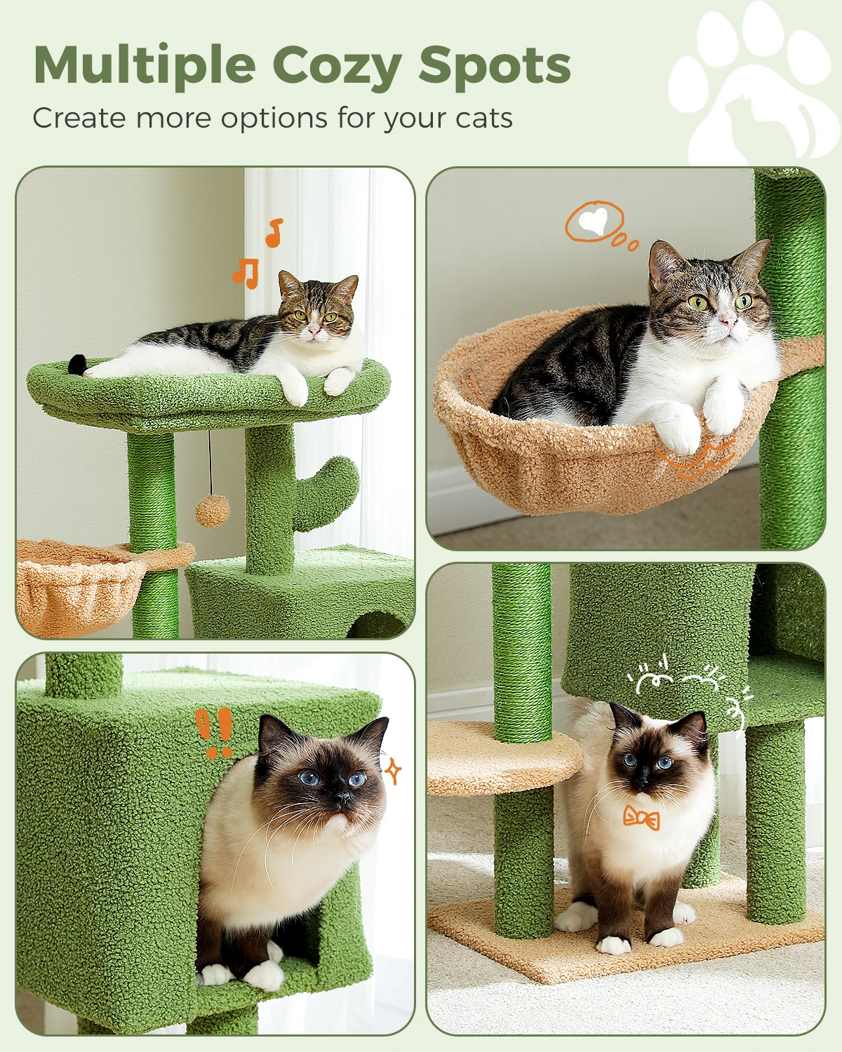 [Mejor apariencia]: El lindo diseño de cactus de este árbol para gatos crea un ambiente encantador para sus gatos de interior. Además, funciona como una planta decorativa que se combina perfectamente con la decoración de su hogar.